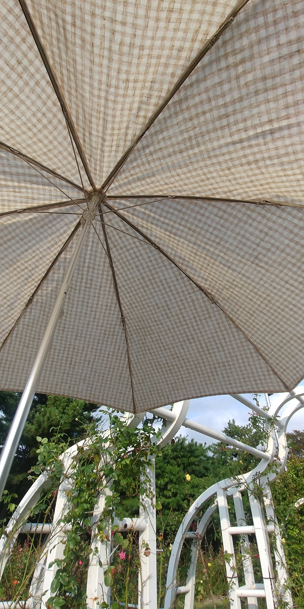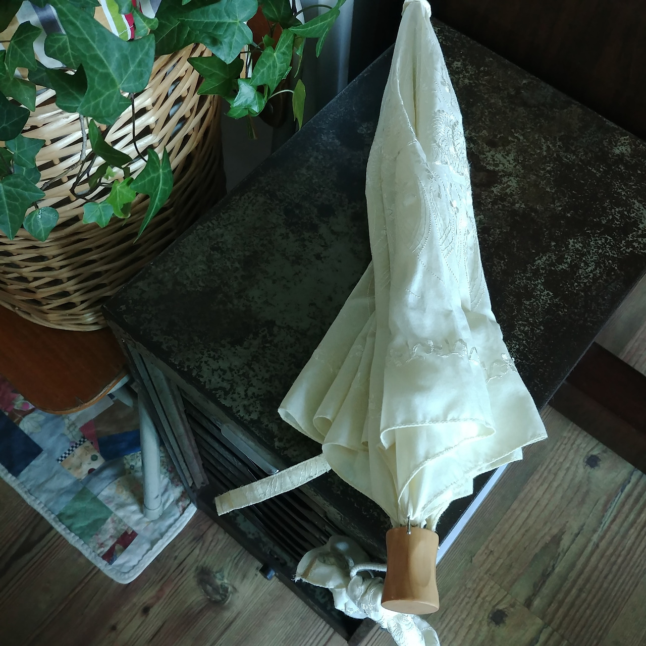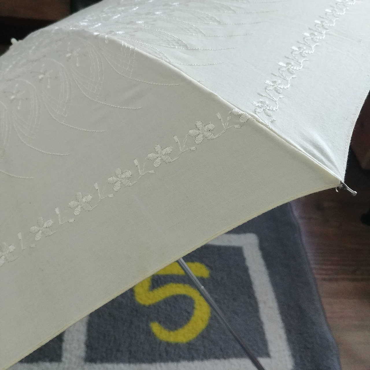 갖고 있는 양산도 맘에 들지 않고 맘에 드는 양산을 찾기도 어려웠다. '한번 만들어 봐?' 요리조리 살펴보니 만들 수 있을 것 같았다. 아주 오래전에 선물 받은 게 하나 있었는데 노랗지도 않고, 하얗지도 않고, 누르스름하고 어정쩡한 색에, 예쁘지 않은 기계자수로 도저히 쓰고 나갈 용기가 없었다. 그래! 세상에 단 하나뿐인 양산을 만드는 거야.