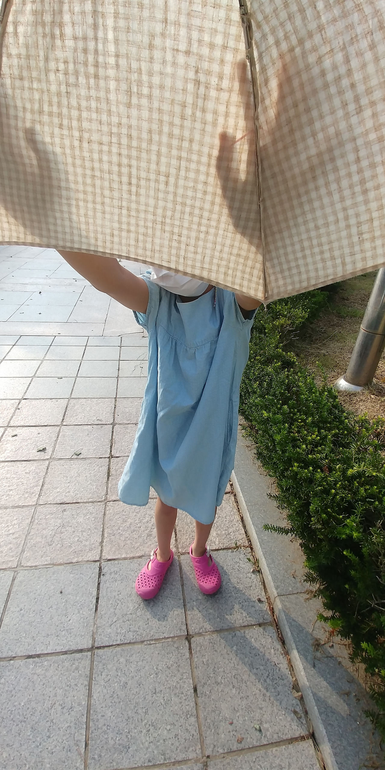 선크림을 잘 바르지 않기 때문에 양산을 쓰기로 했다. 오래전에 선물 받은 양산 발견! 사실 양산을 쓰기 시작한 건 작년부터다. 뙤약볕에 양산의 효과가 꽤 크다는 기사를 접한 후였다. 하지만 양산의 패턴과 색상은 왜 다 그모양인지 펼쳐들기까지 꽤나 용기가 필요했다. 선크림을 바르는 것도, 양산을 쓰는 것도 별로였지만 늘어나는 건 잡티 뿐이라 결국 별 수 없이 양산이다.