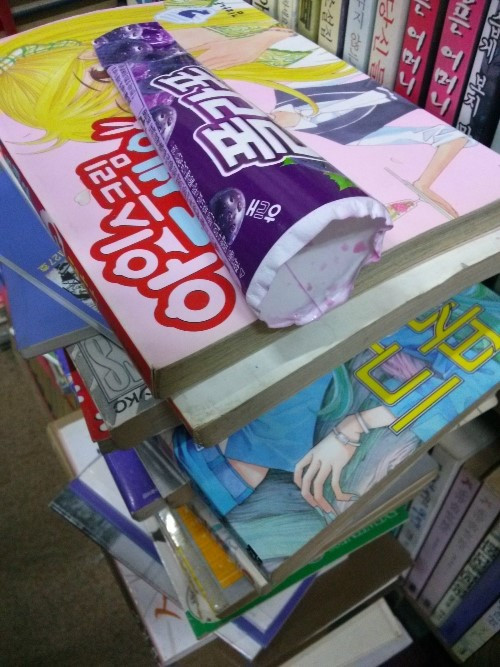 서점 앞에 버리고 간 것. 쓰레기통으로 보였나?