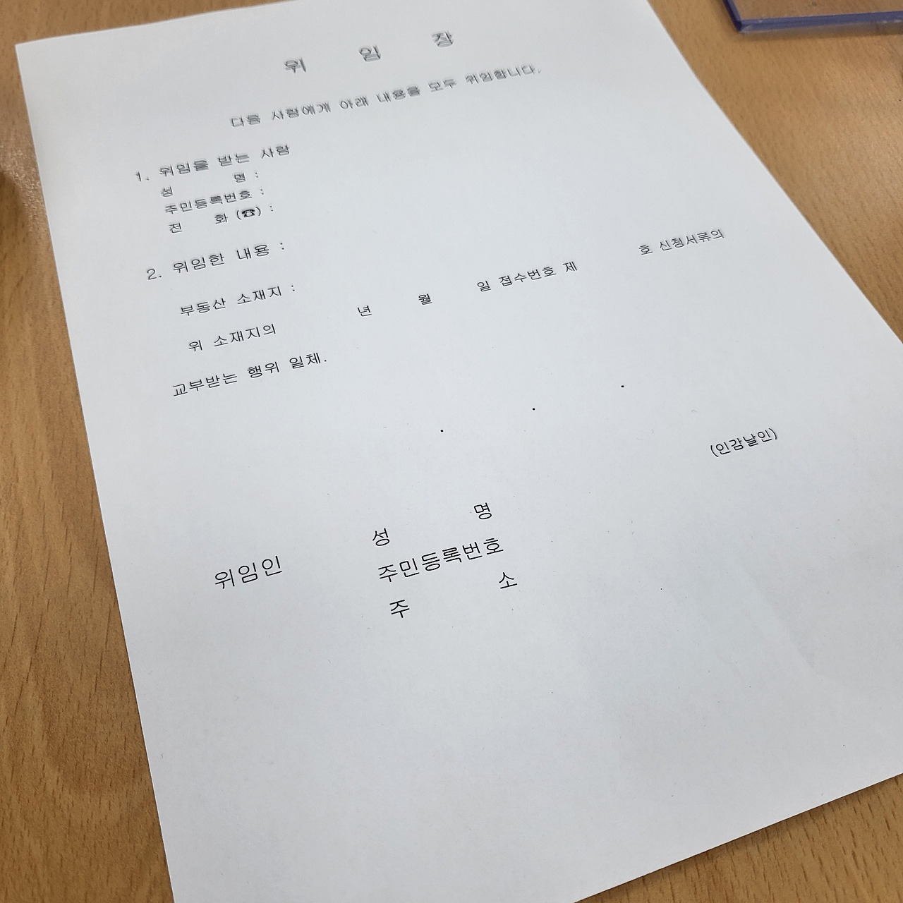 다만 등기 권리증을 수령하려 갈 땐 상속인 모두가 갈 수 없는 형편이라면 위임장이 필요하다.