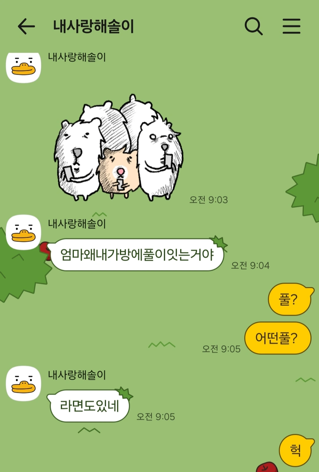 학교에서 가방을 열었을 때 얼마나 황당하고 웃겼을지 가늠이 되고도 남는다. 조금 창피했을 수도 있겠다.
