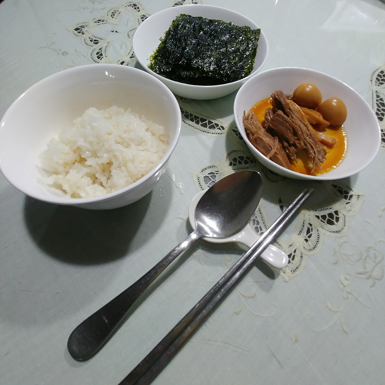 밥과 장조림과 김 - 내 딸의 단촐한 저녁식사 상차림