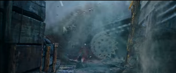 두 번째 은유는 프레스 가공이다. 컨베이어벨트의 운동성이 현대전쟁의 수행과정을 거시적으로 설명한다면, 프레스 가공은 전쟁의 파괴적인 속성과 양상을 미시적으로 묘사한다. 영화에서 이를 가장 극명하게 보여주는 것이 바로 탱크의 등장이다.