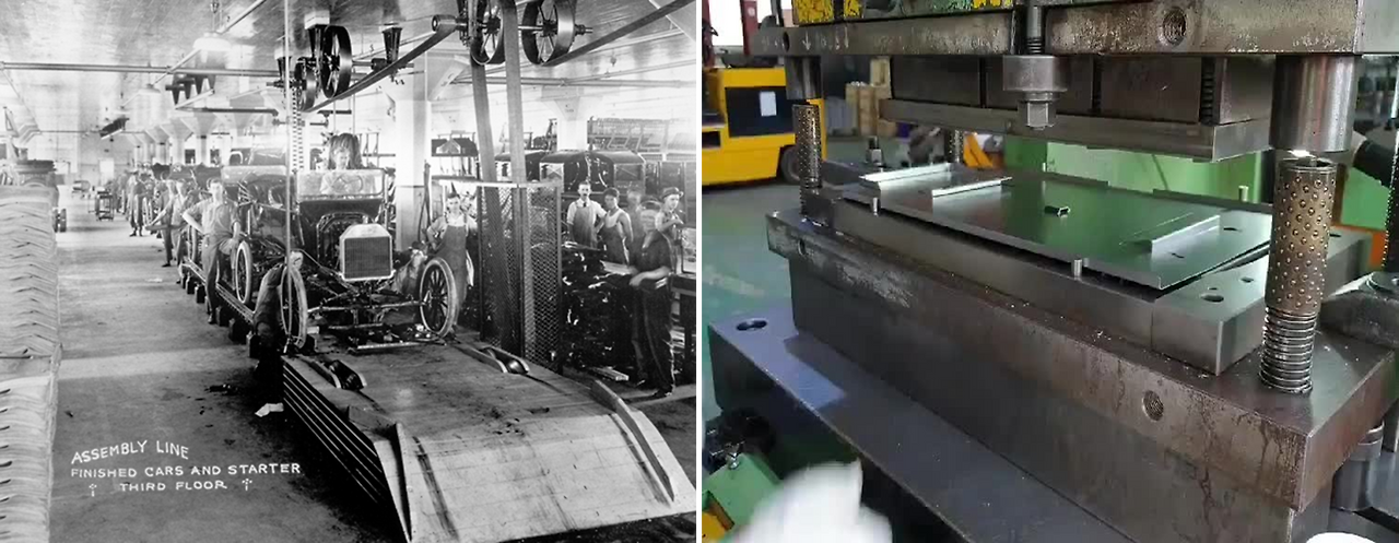 영화는 교묘하게 대량생산공정을 대표하는 두 개의 동적 이미지를 전쟁에 투영한다. 그것은 순환과 분절의 컨베이어벨트와 강력한 힘으로 찍어 누르는 프레스 가공이다. 이 두 메커니즘이 1차 세계대전의 참혹함을 묘사하는 핵심 장치가 된다.