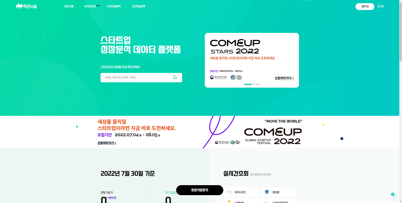 혁신의 숲에서는 해당 스타트업의 고용 현황, 재무상태, 손익과 제품의 트래픽, 월 버즈량 등의 정보를 확인하기 좋았다.