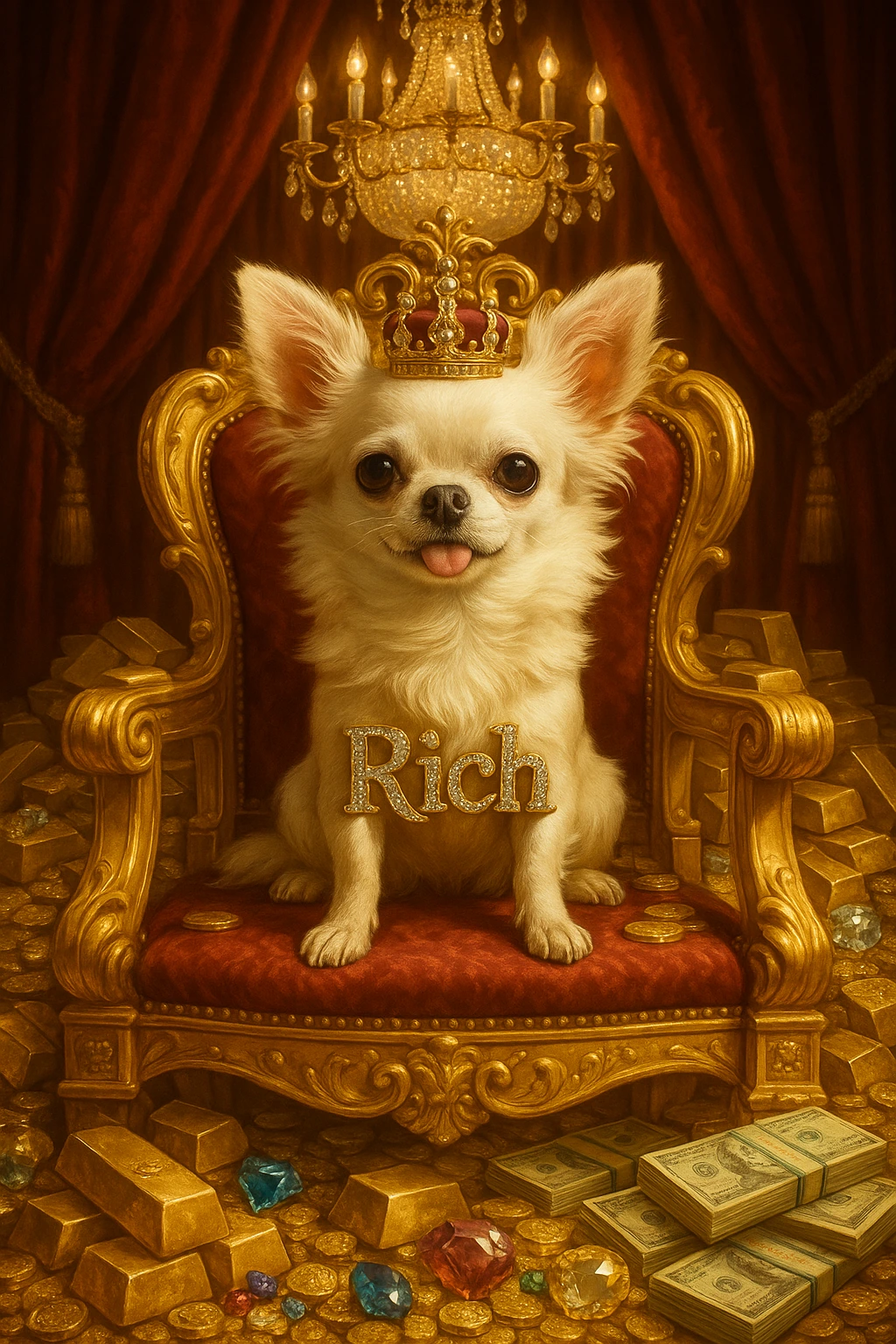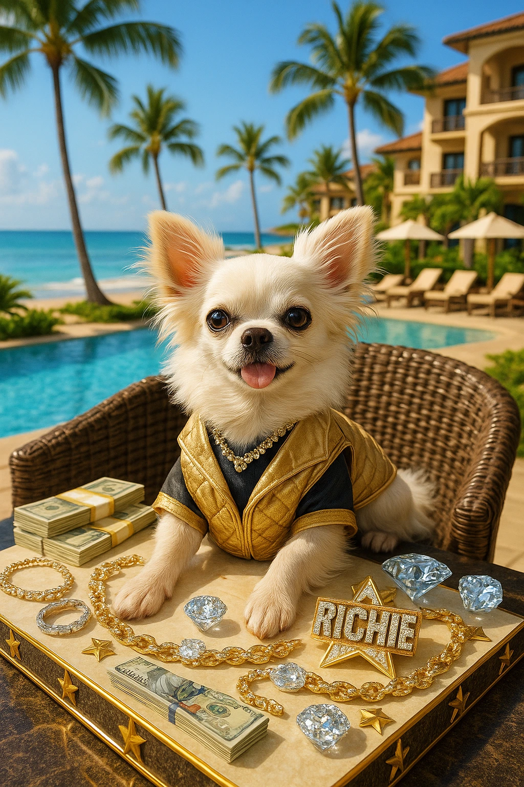 이 귀여운 친구의 이름은 "리치", 그리고 그는 돈이 미친 듯이 들어오는 스타일의 전설적인 강아지!