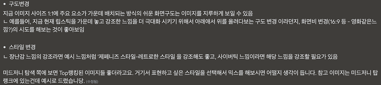 특히, 각 AI 모델의 특성을 이해하는 것도 중요했다. 미드저니의 경우, 같은 프롬프트라도 버전에 따라 전혀 다른 결과물이 나온다. 이는 마치 각기 다른 성격을 가진 아티스트와 작업하는 것과 비슷했다.