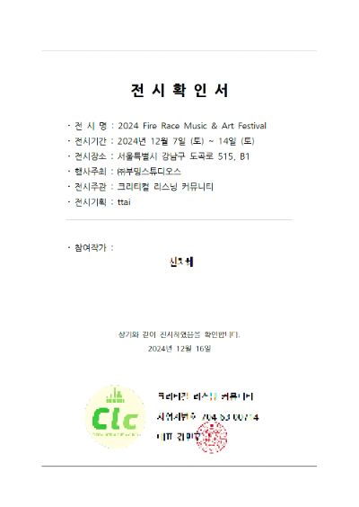 나의 자랑스러운 전시확인서를 증명하며 내가 작가로 데뷔한 과정을 공유하고자 한다.