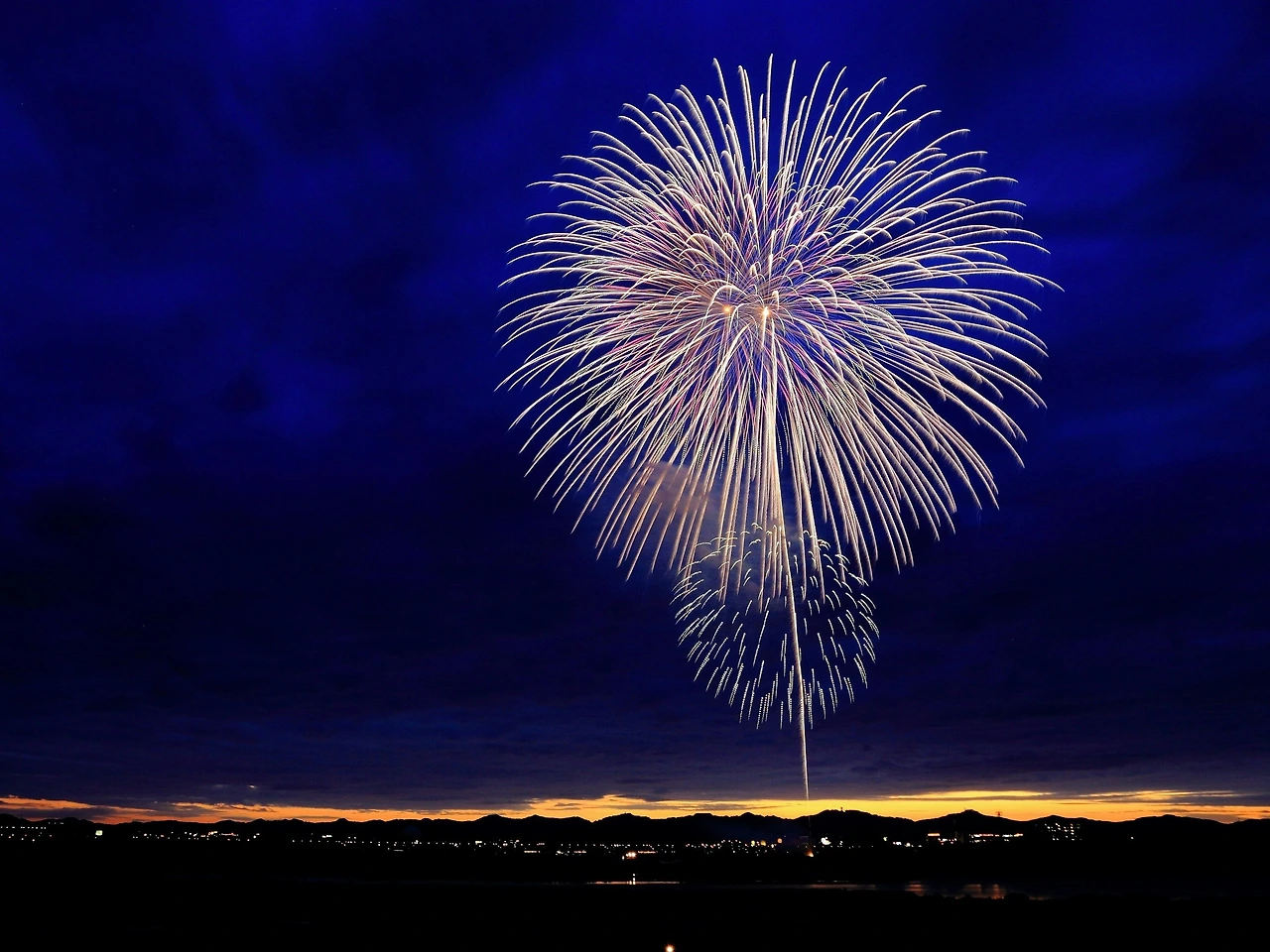밤하늘에 불꽃놀이로 피어나는 파란색 불새
