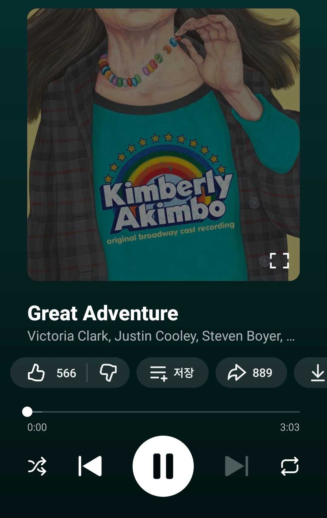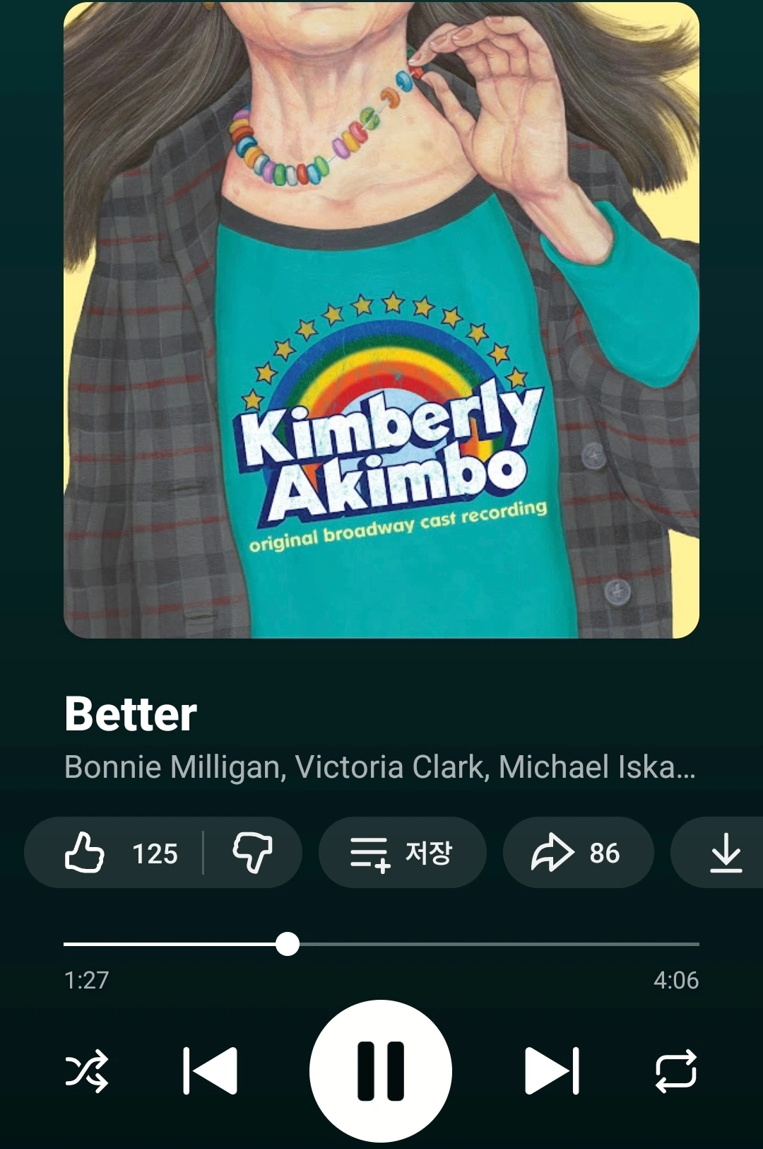 돌아오는 비행기에선 넘버를 전체로 다운받아서 들었다. 브로드웨이를 가기 전 티켓을 예약해 둔 극은 노래를 다 알고 갔지만, 킴벌리 아킴보는 볼거라는 예상을 못했어서, 노래가 이만큼 좋은지를 뒤늦게 깨달았던 것이다.