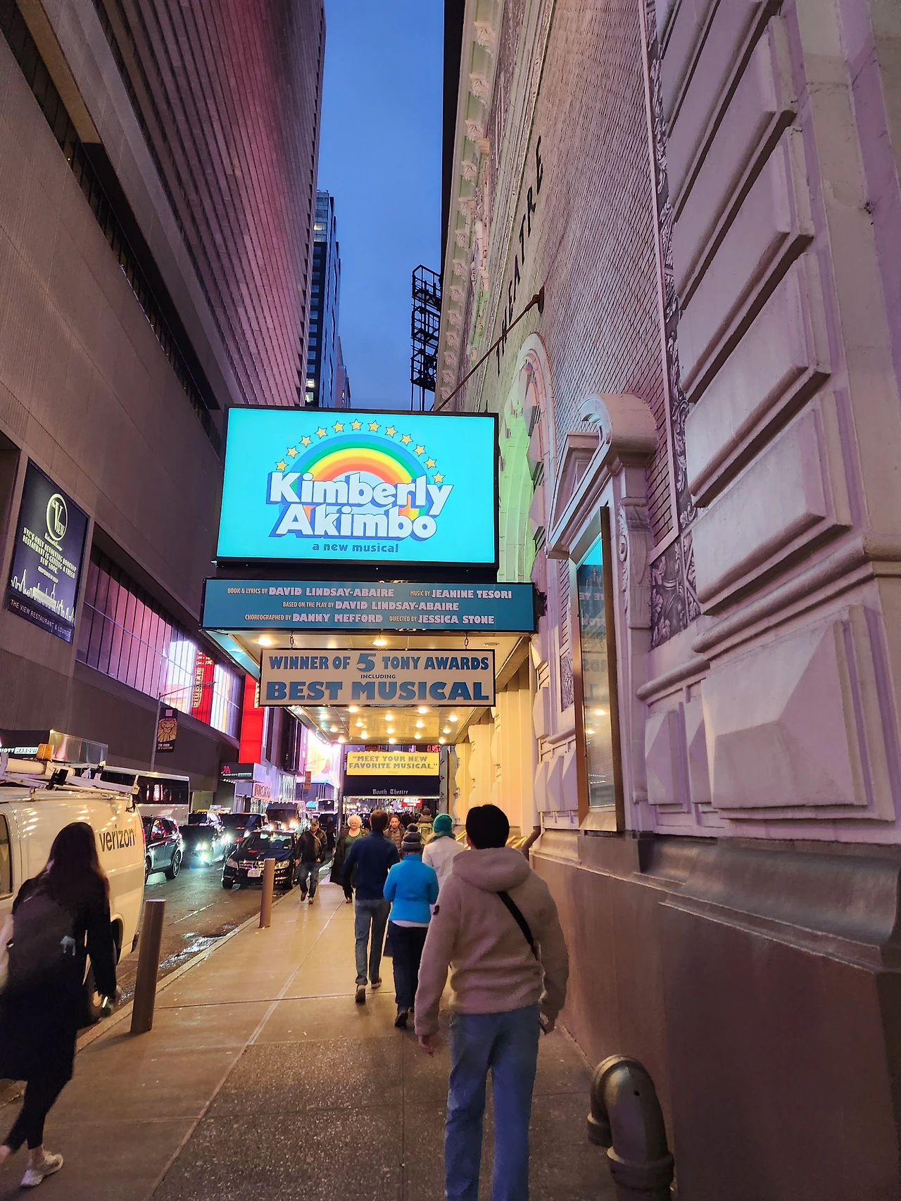 위 간판에는 킴벌리 아킴보 (Kimberly Akimbo) 뮤지컬 안내판이 있었고, 2023년 당시의 토니상 시상식 중계를 봤던 나는 이 작품을 단번에 알아봤다.
