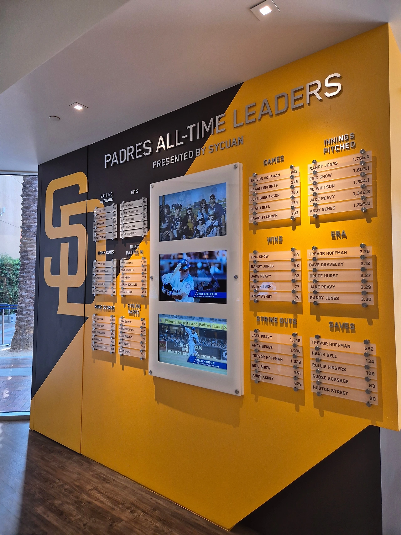 팀의 영구결번 선수들, 의미있는 노히터 기록, 동상 등 내부에 볼거리가 많다.
