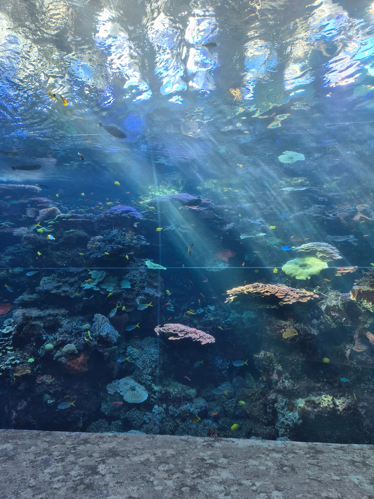 다른 수족관처럼 통로로 되어 바다 한가운데를 걷는 느낌도 물론 받을 수 있다.