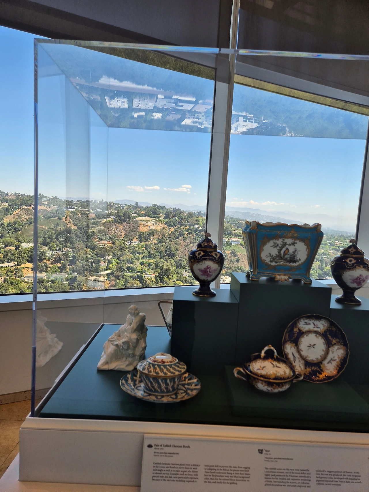 산 위에 지어진 미술관인 더 게티는 생각보다 많은 수의 전시관이 있다. 내가 기억하기론 4개의 전시관이 있었고, 그 외에도 정원이 있다. 또한 이곳에서 풍경을 내려다보면 산 아래를 내려다보는 듯한 풍경을 볼 수 있다.