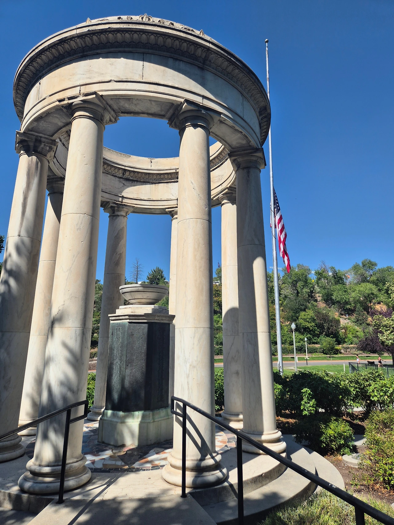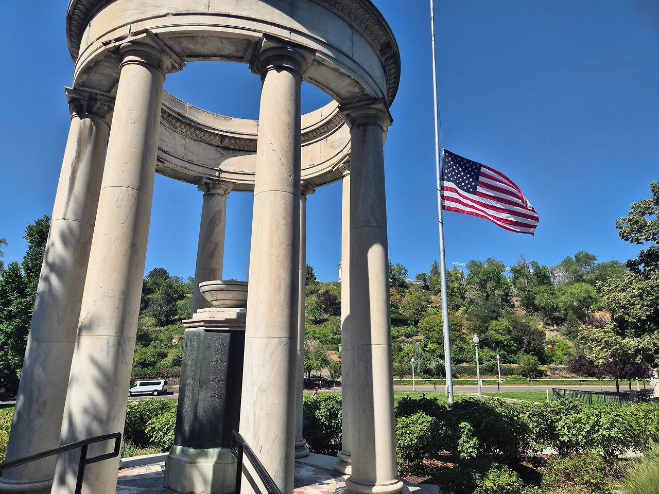 이것은 1차대전 메모리얼인 파고다 이다. 바로 앞에 성조기가 바람을 따라 펄럭이는 것이 미국의 베테랑들에 대한 존경심을 보여준다.