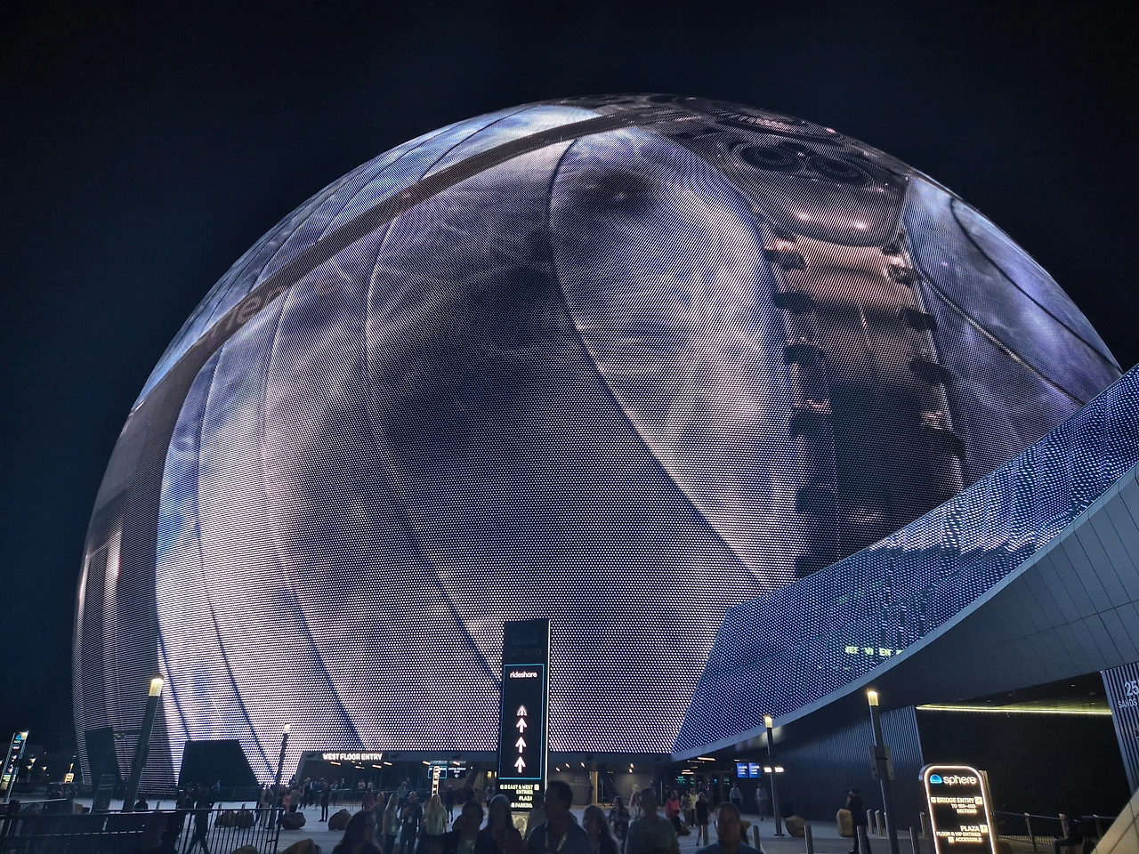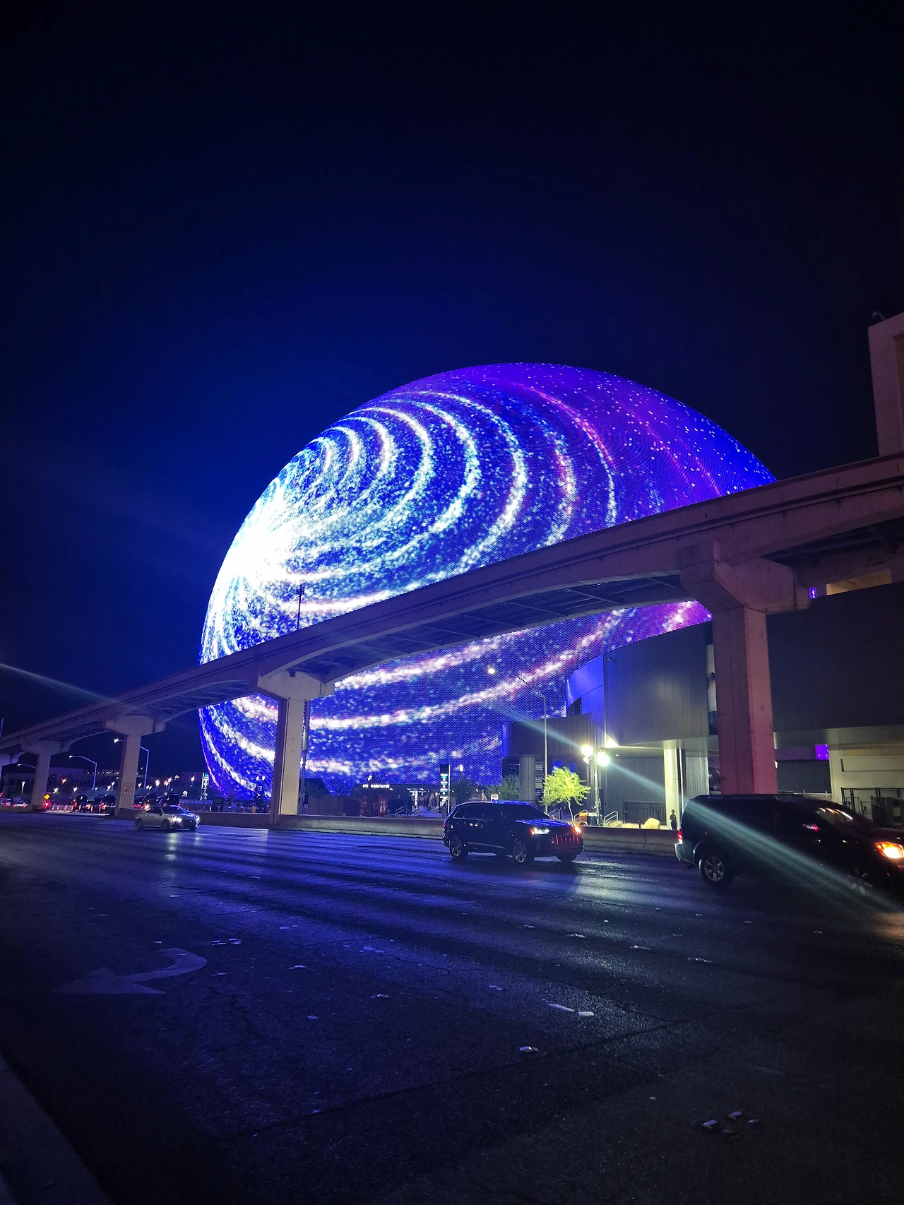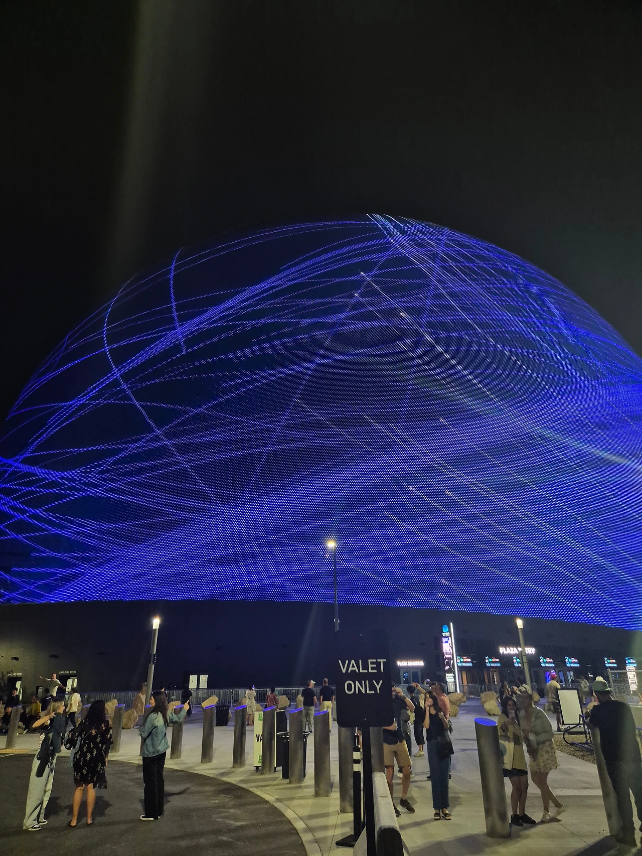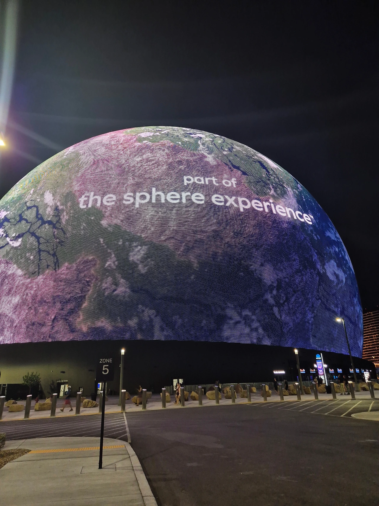 이 라스베가스에 도착하기 전 창문을 통해 도시의 모습을 바라보면, 신기한 구 모양의 건축물이 있다. 이것의 이름이 스피어 (Sphere) 이다.