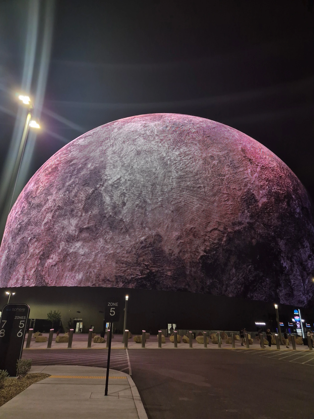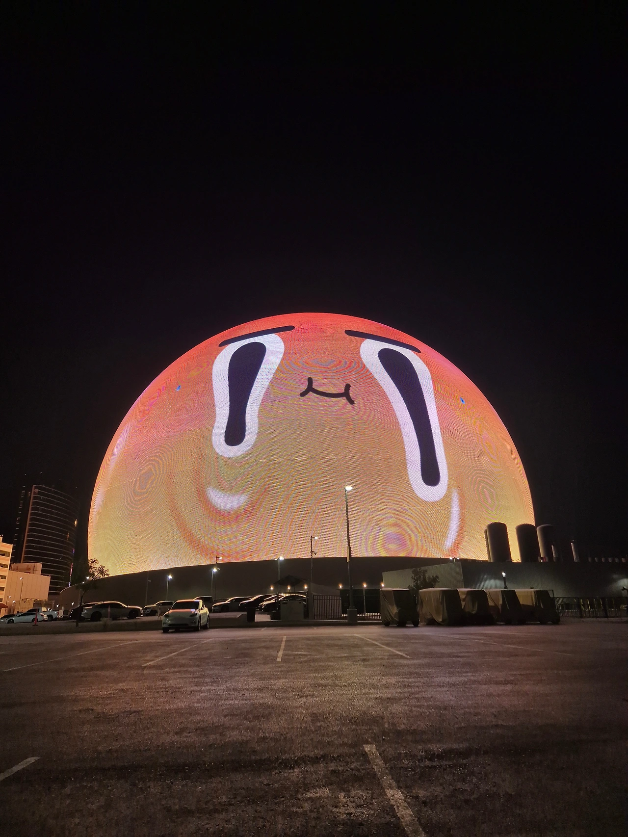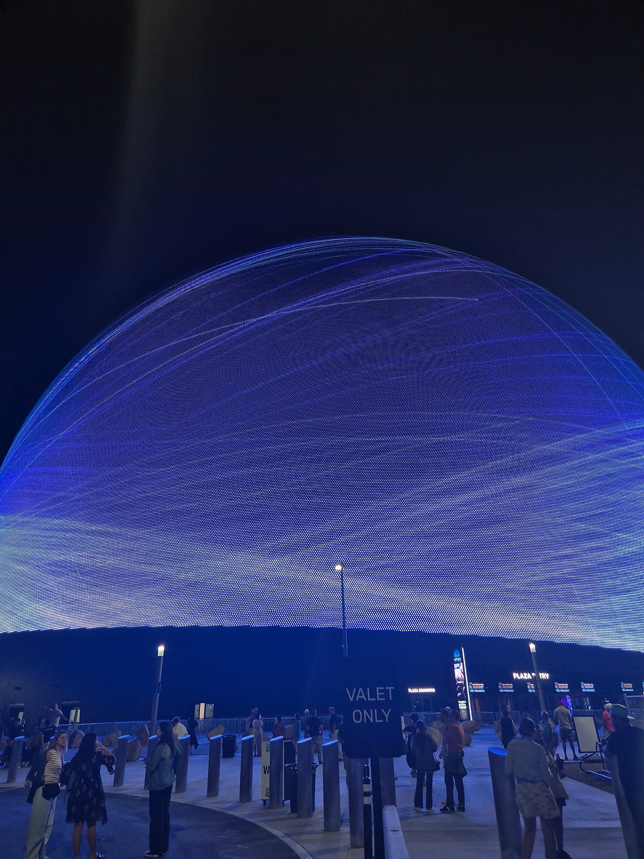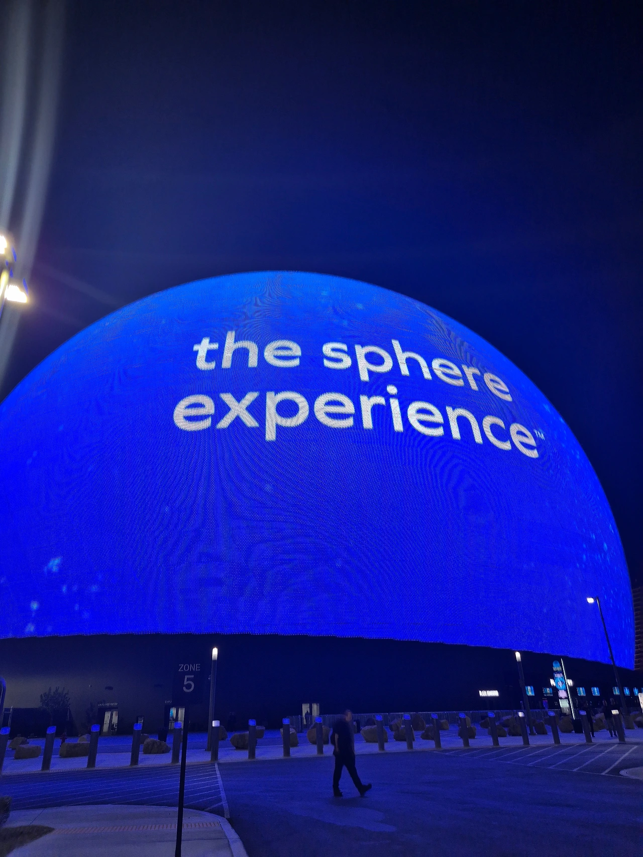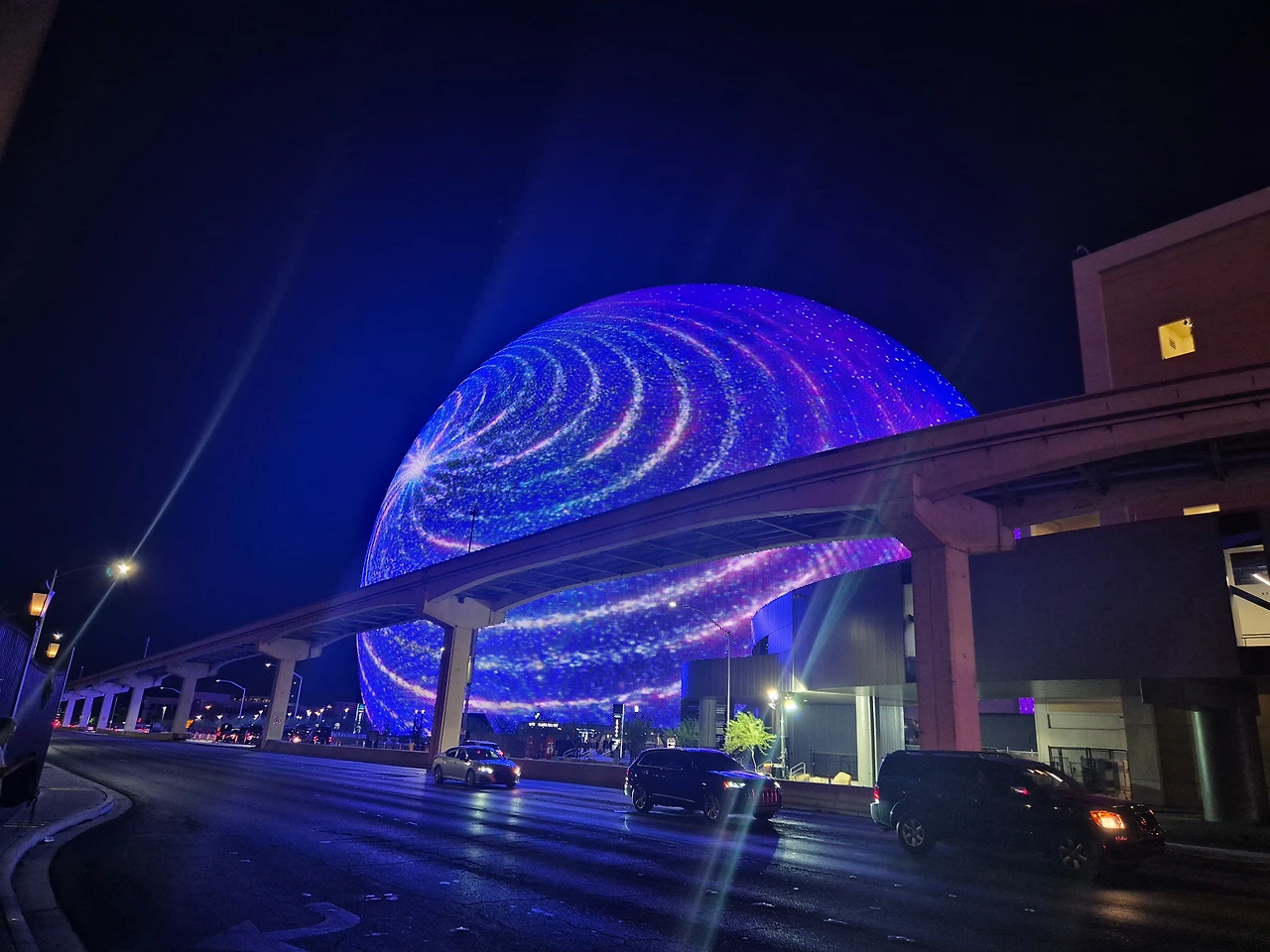 이 라스베가스에 도착하기 전 창문을 통해 도시의 모습을 바라보면, 신기한 구 모양의 건축물이 있다. 이것의 이름이 스피어 (Sphere) 이다.