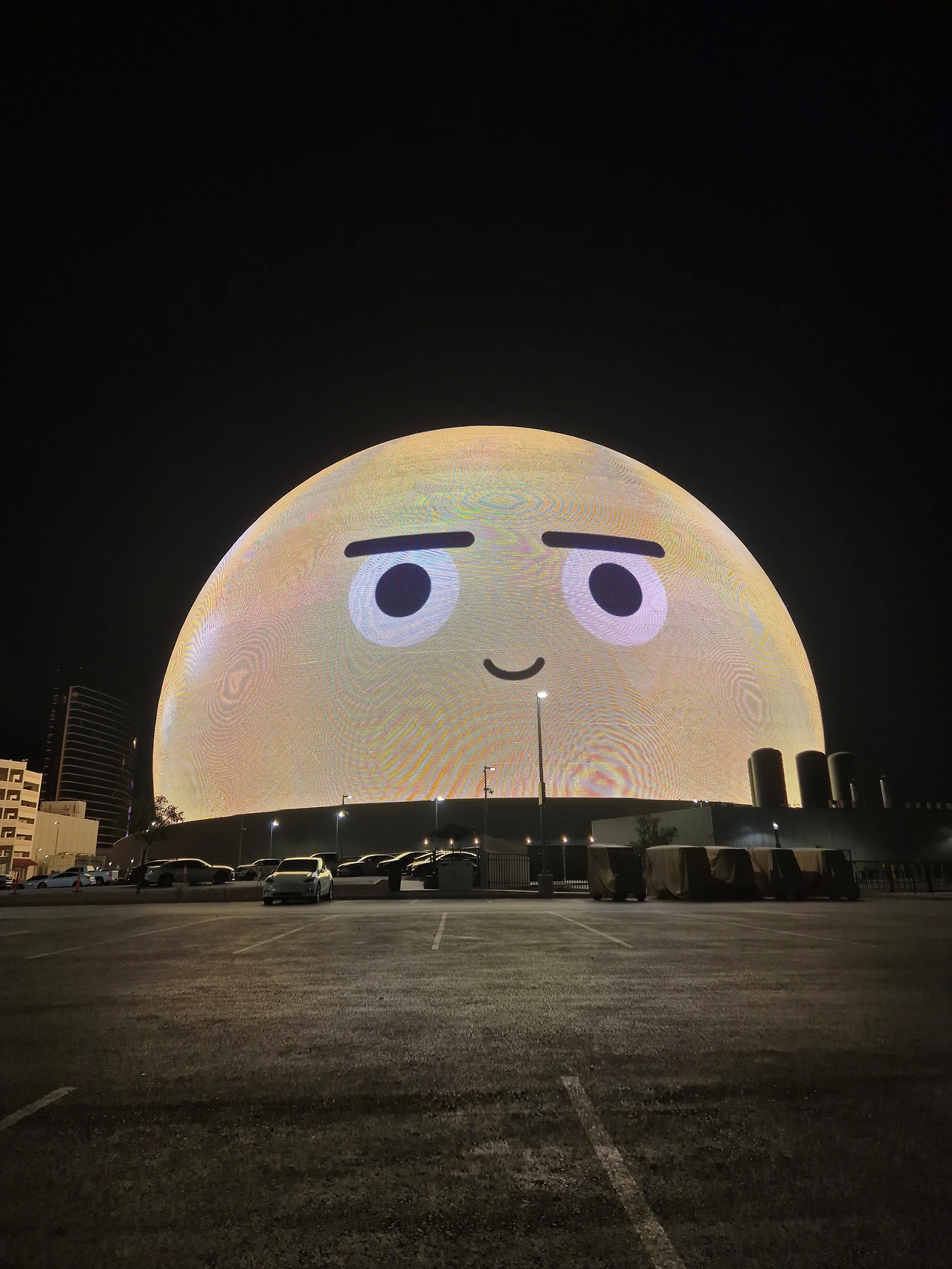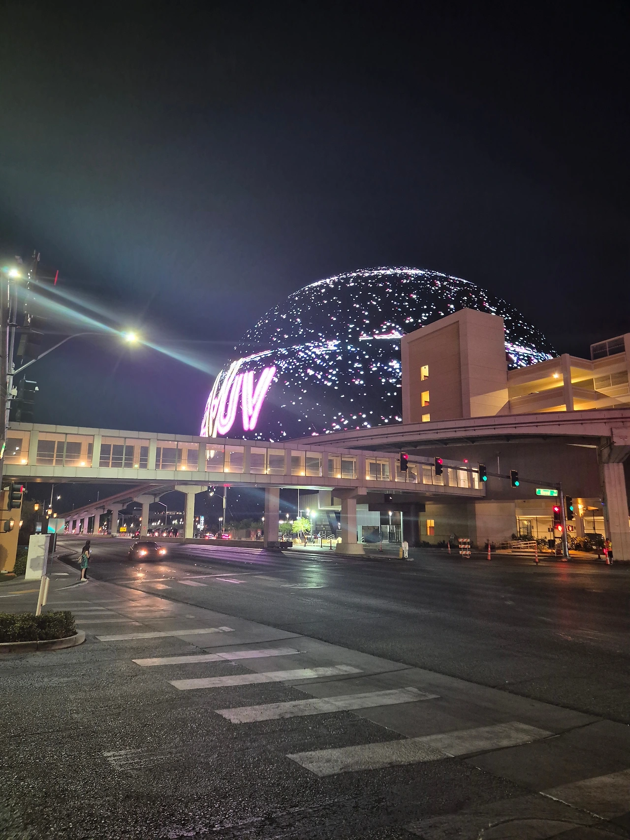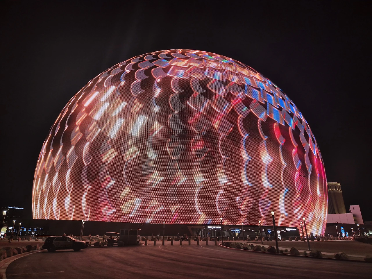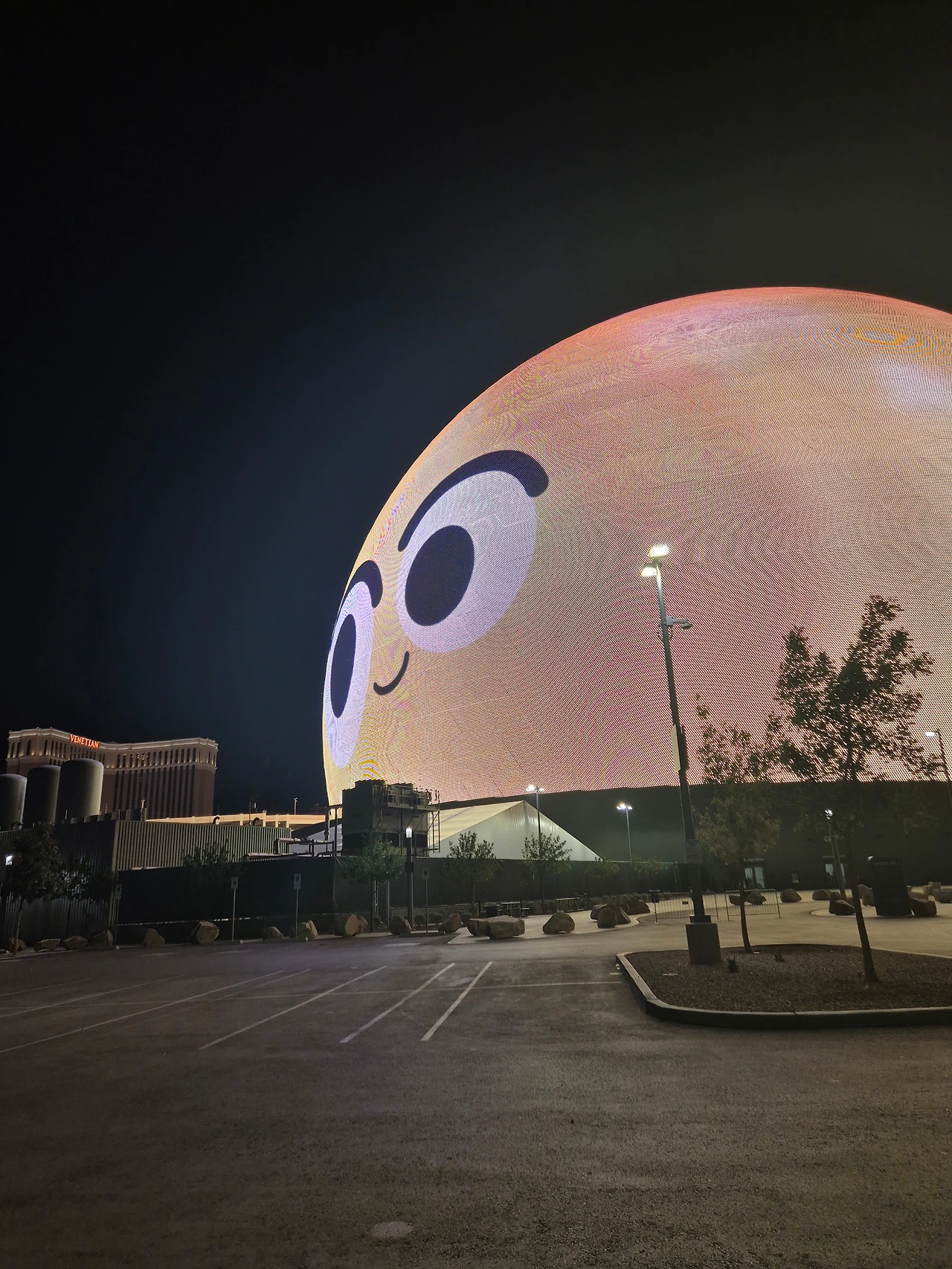 이 라스베가스에 도착하기 전 창문을 통해 도시의 모습을 바라보면, 신기한 구 모양의 건축물이 있다. 이것의 이름이 스피어 (Sphere) 이다.
