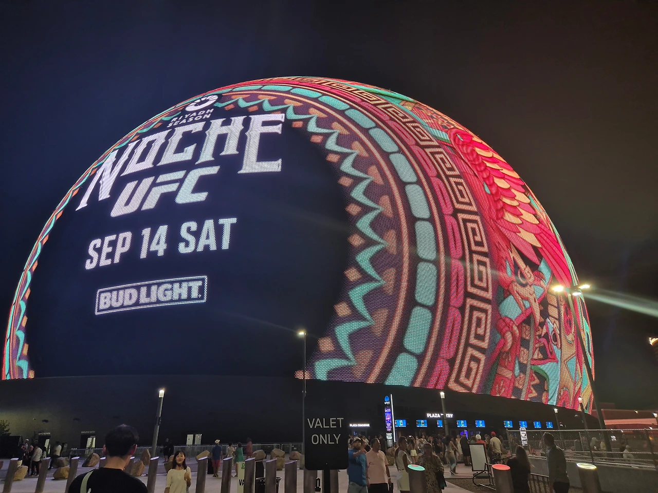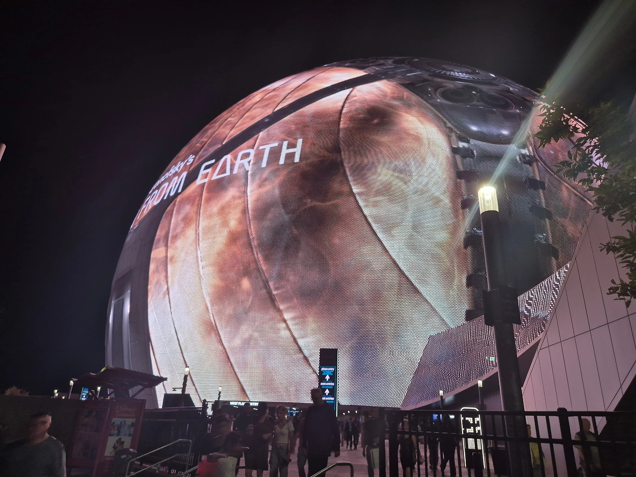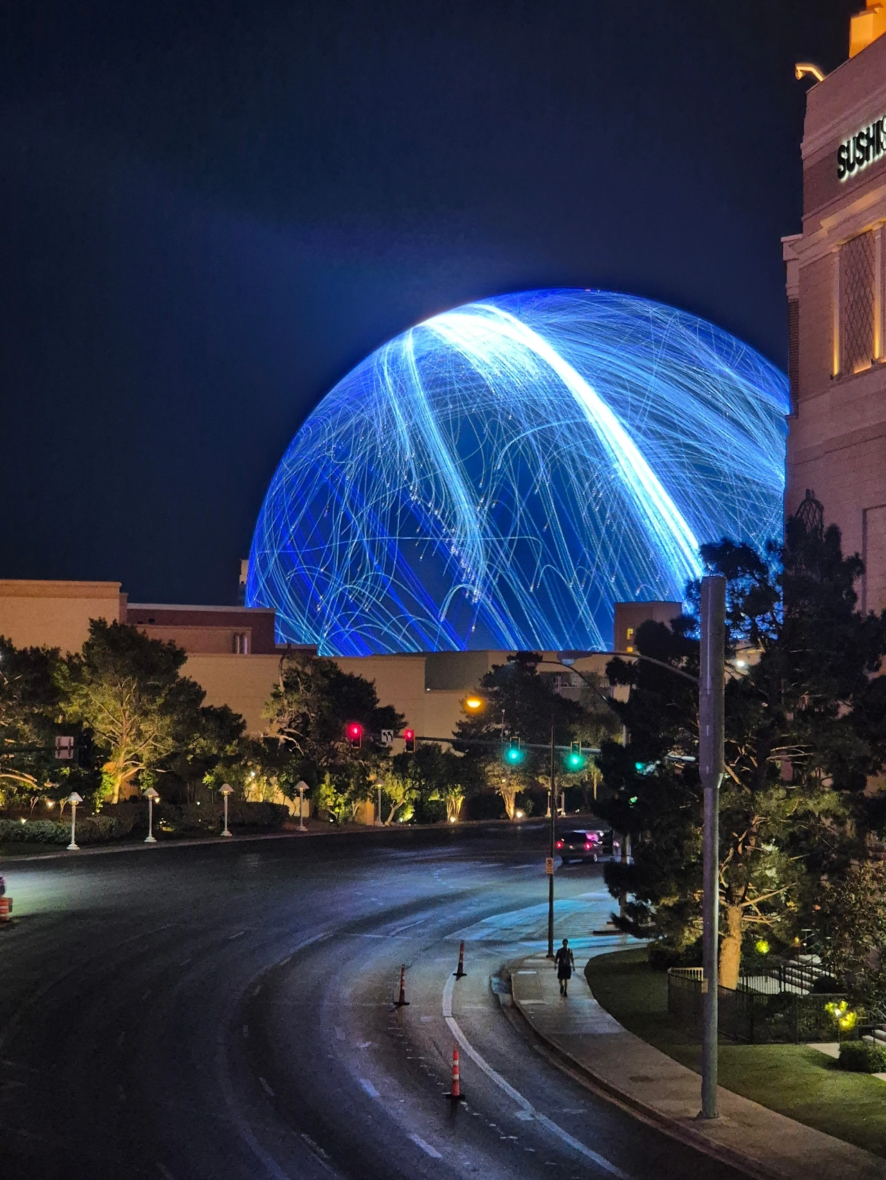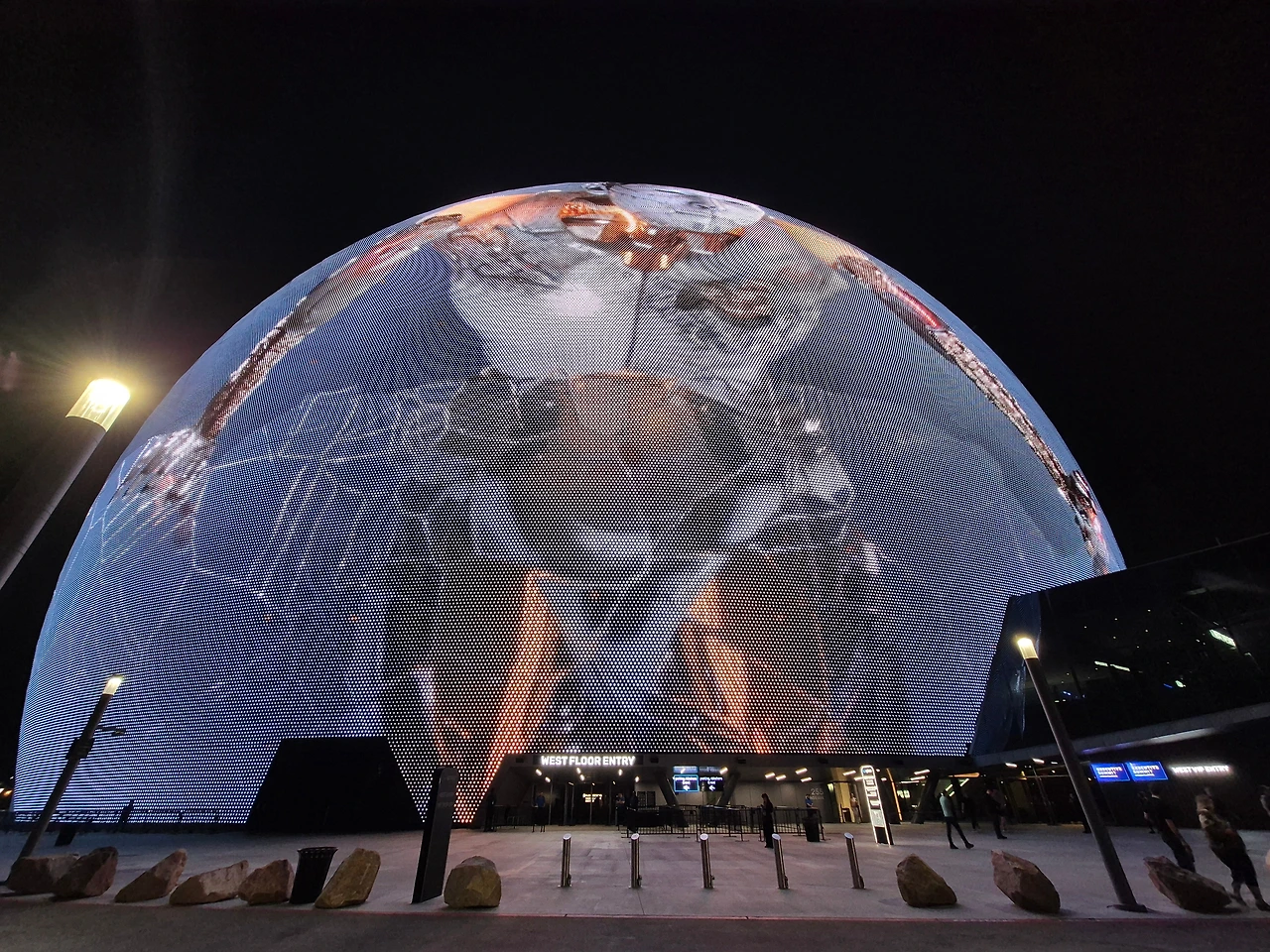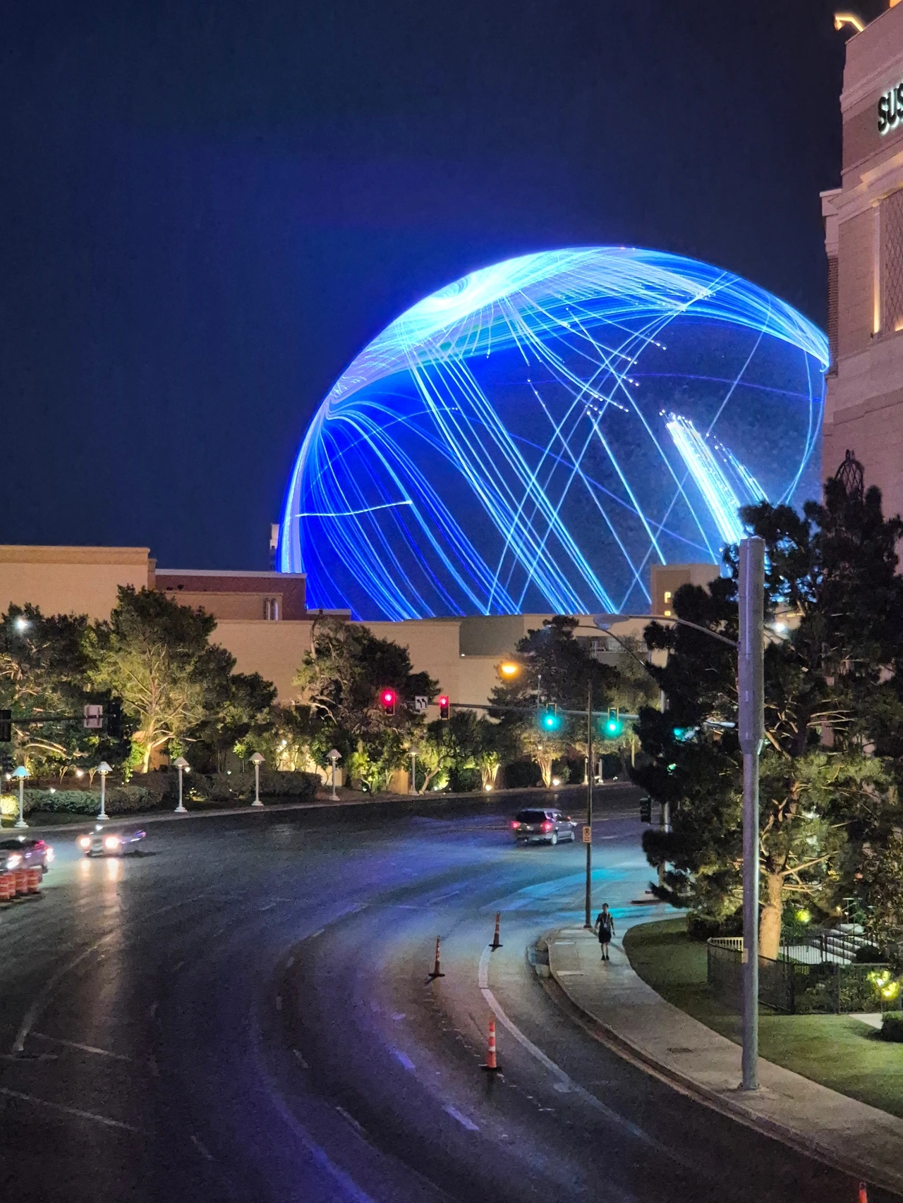 이 라스베가스에 도착하기 전 창문을 통해 도시의 모습을 바라보면, 신기한 구 모양의 건축물이 있다. 이것의 이름이 스피어 (Sphere) 이다.