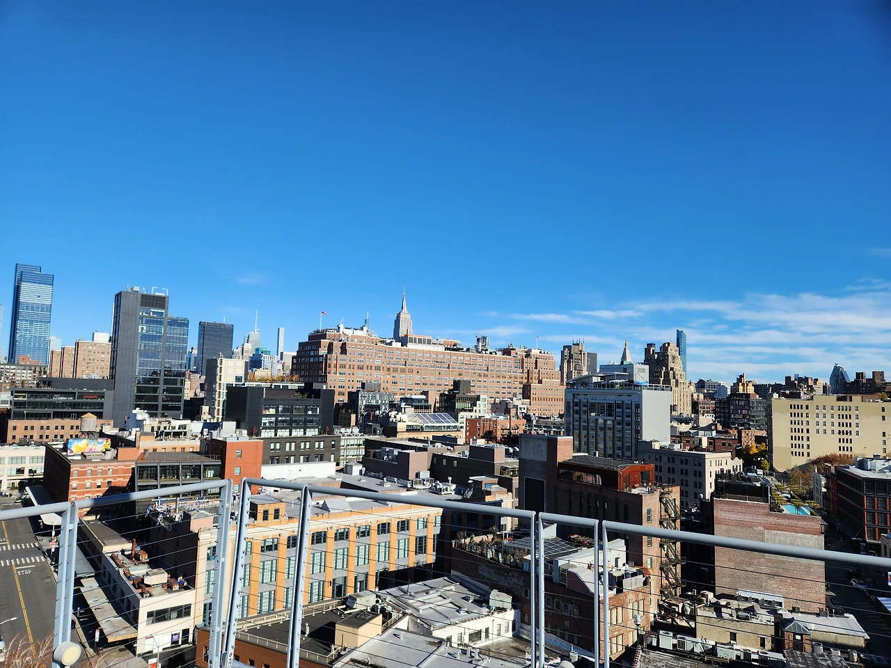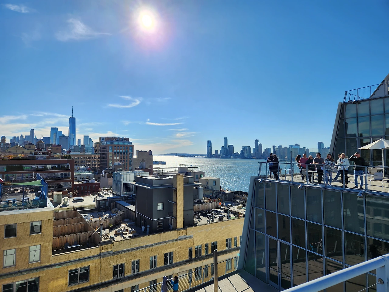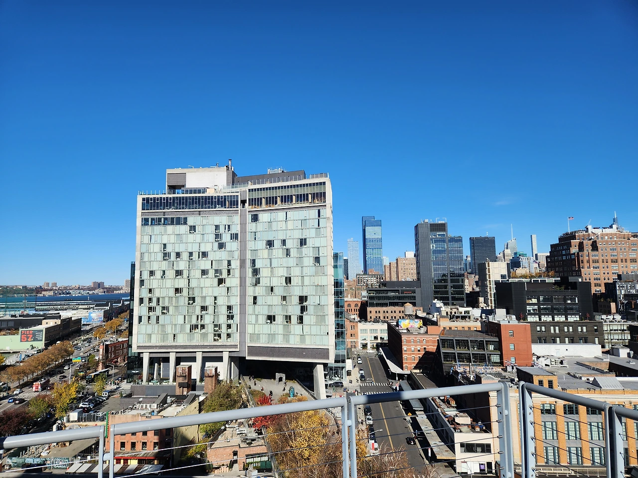 한 층의 구석 부분에는 테라스같은 공간으로 연결되는 문이 있고, 문을 열고 나가면 뉴욕 시내의 맑은 하늘과 도심을 볼 수 있다.