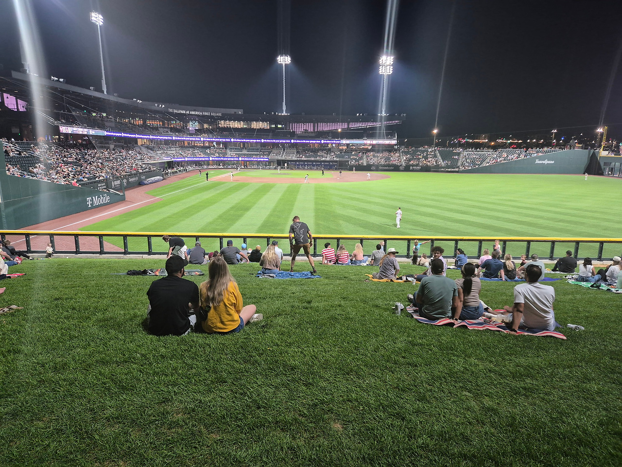 또한, 잔디밭이 있어 사람들이 이 잔디밭에 돗자리를 깔고 앉아서 경기를 관람하기도 한다. 강아지를 데려온 사람들은 이곳에서 강아지와 함께 관람한다.
