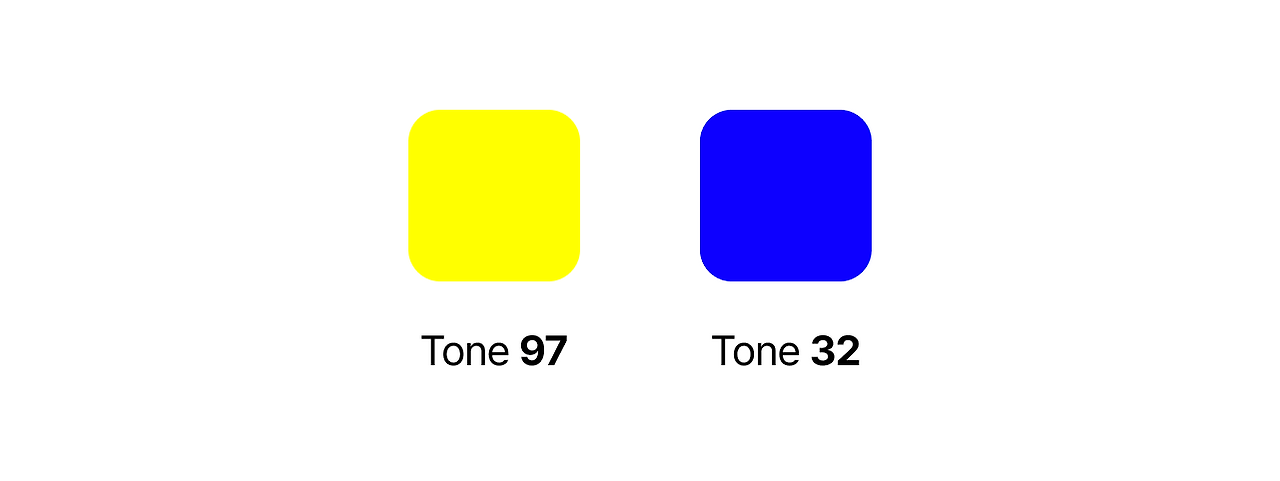톤(Tone)은 HCT의 가장 핵심적인 요소입니다. 일반적인 밝기값과 달리, 인간이 실제로 지각하는 밝기 차이를 반영했습니다. 예를 들어 같은 밝기값을 가진 노란색과 파란색이라도 우리는 노란색을 더 밝게 느끼는데, 톤 값은 이러한 차이를 보정하여 표현합니다.