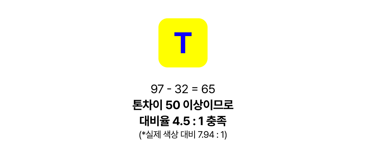 톤(Tone)의 차이가 50이면 WCAG 대비율 4.5 이상 보장