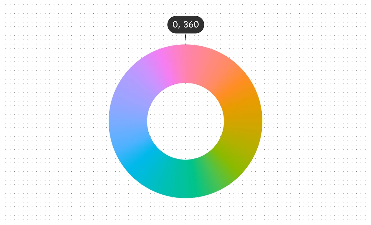 색상(Hue)은 HSB의 Hue와 동일한 개념으로, 색상환에서의 위치를 나타냅니다. 0도부터 360도 사이의 각도 값을 가지며, 빨강은 0도, 녹색은 120도, 파랑은 240도에 위치합니다.