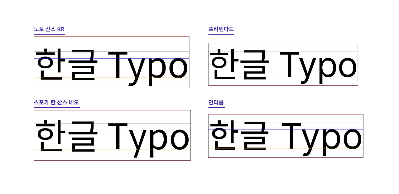 노토 산스 KR, 스포카 한 산스, 프리텐다드, 인터롭 폰트 메트릭스 비교