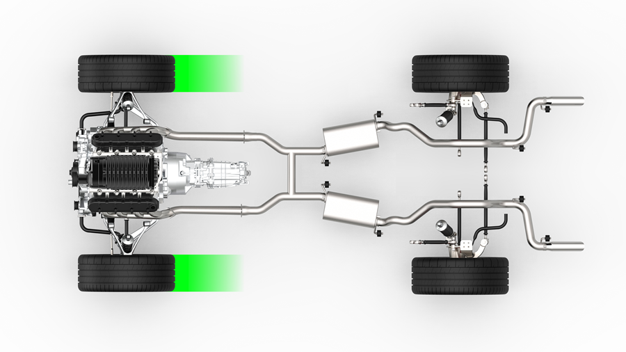 후륜 구동은 뒤쪽 두 바퀴에 동력을 전달합니다. 전륜 구동이 앞쪽에서 차를 이끌어간다면 후륜은 뒤에서 밀어 나간다고 보시면 됩니다. 후륜 구동 방식은 전륜 구동 방식보다 무게가 고르게 분배되고 구동축이 뒤쪽에 있어 승차감이 좋습니다. 단점으로는 앞바퀴보다 무게가 적게 나가는 뒷바퀴에서 힘을 전달하기 때문에 마찰력과 접점이 줄어들어 눈길 운전에 취약합니다.