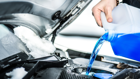 겨울철 기온이 떨어지면 엔진의 열을 식히는 냉각수가 얼어 엔진에 무리를 줄 수 있습니다. 이때 부동액이 자동차 냉각수가 얼지 않도록 하는 역할을 하는데요. 한파가 시작되면 부동액과 물을 적정 비율(6:4)에 맞춰 섞어 사용하는 것이 좋습니다.
