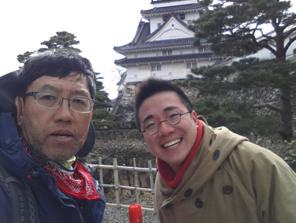 다시 전차에 올라 다음 교차로에서 또다른 막마른 데까지 타고 간다. 전차를 타고 가면서 보는 고치 시의 모습이 참 아기자기하고 하면서 흥미롭다. 이렇게 전차타는 기분을 맘껏 누리고 고치 성으로 향한다. 고치성 관광을 하면서 기념 사진을 찍는데, 사진을 찍어 달라고 부탁드린 한 분이 내게 찍을 장소를 선정해주면서 아주 잘 나오게 찍어주시는 게 아닌가. 너무 감사해서 사진에 즉석 사인을 받으려고 잠시 기다리게 한 뒤, 다시 사진 한 장.