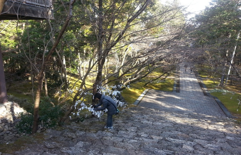 지쿠린지에서, 사연을 담아 가지에 꽃으로 꽂아둔다