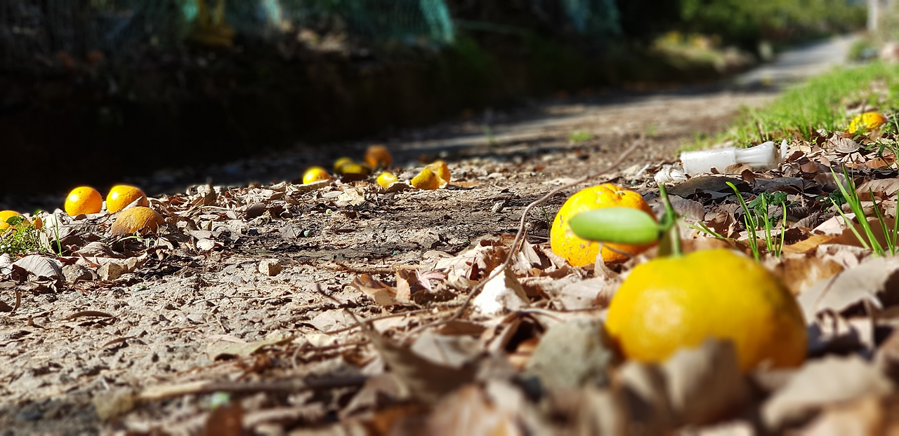 산 뒤를 돌아보니 귤이 풍요롭다 못해 길바닥에 나뒹군다.