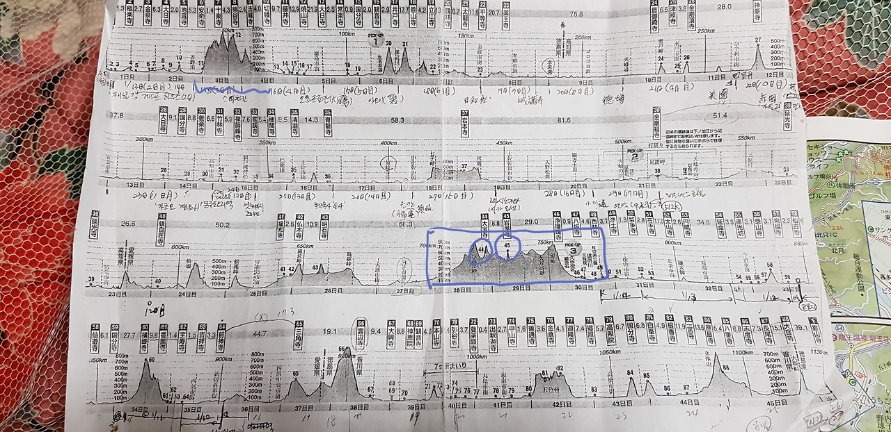 어젯밤 열심히 지도를 펼쳐놓고 보았던 것도 이곳 지형이 높기도 높았지만 깊은 삼림이 분포된 지역이 가장 넓게 되어 있기 때문이다. 마치 3개도에 걸쳐 분포한 지리산처럼. 88개소 절이 위치한 지형 중, 이곳이 가장 넓고 높게 산이 위치해 있다.
