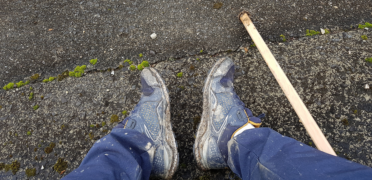 손이 시려 털장갑도 끼고(1차 순례 때, 고치시에서 잃어버린 장갑 대신 구입한 수제품)
