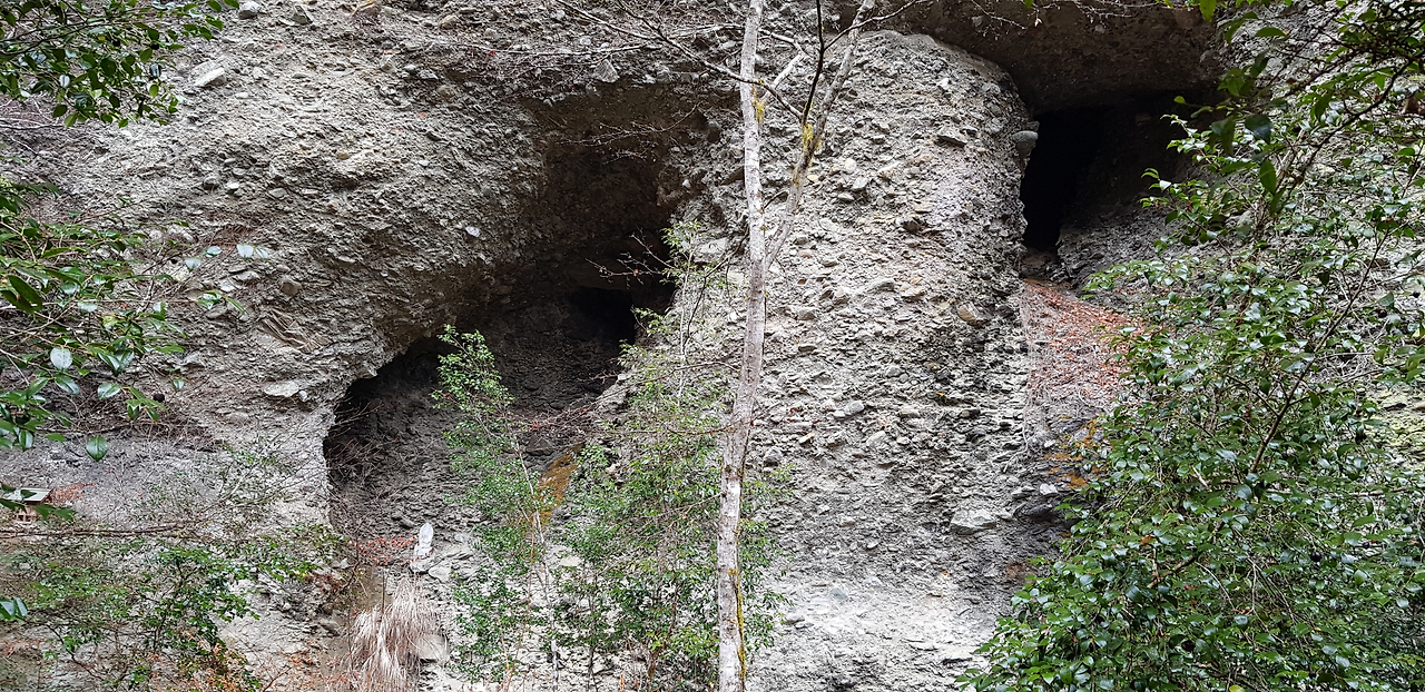 바위에 송송 뚫린 굴에서 수행한 흔적을 보고,