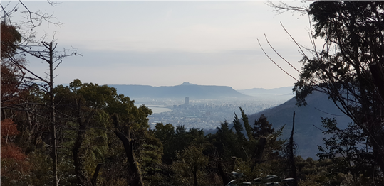 다카마츠 시내 그 너머로 오전에 올라가서 이곳을 찍었던 산이 보인다.