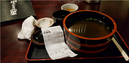 양념, 소스 따로 우동 따로. 국물맛은 맹물 같다. 소스를 넣고 양념(생강, 깨소금 등)을 넣으면 비로소 국물맛이 나온다. 우동 그릇도 크고 국물도 하나 가득인데 국수는 얼마 되지 않는 게 아쉽다. 젠츠지 근처의 우동집은 서민적인 냄새가 나는데 여긴 이미 상품화가 된 듯 인간미는 부족하다. 질적으로는 어떨까. 면발은 졸깃, 그래서 조금 씹고 삼켜 장으로 내려보내기엔 아깝다. 눈앞에서 면들이 순식간에 사라지고마니 섭섭. 남은 건 국물뿐인데 85번 절을 가기 위해선 서둘러야 해서 아쉽지만 국물을 그대로 두고 가야 한다. 한 모금만 더 들이키고 일어선다.