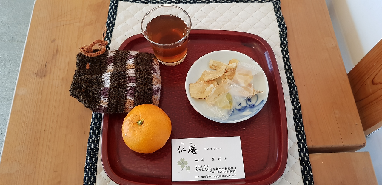 조금 올라가니 '진안'이라는 헨로상들을 위한 휴게소가 있다. 이곳을 운영하시는 어르신이 손짓으로 불러서 들어가 앉아 있으니까 손수 마련한 다과를 오셋다이로 내오셨다.