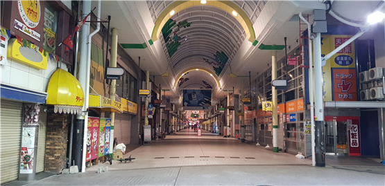 5시 숙소를 나와 다카마츠역으로 가는 길의 깨어나지 않은 시장 모습.