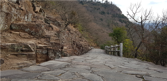 84번 절 야시마지가 있는 산에 오르는 길에 넓적한 돌들이 깔끔하게 깔려있다. 주변을 보니 암석들이 그렇게 층층으로 쌓여 있는 게 많이 보여 이걸 이용했겠구나 하는 생각이 든다.
