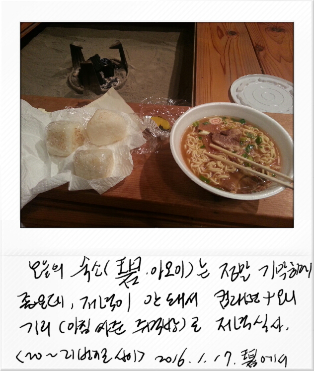 숙소 내부가 너무도 정갈하다. 세탁할 옷들도 내가 하겠다고 하는데도 굳이 해 주신다고 해서, 세탁할 물건을 전해드린다. 미안하다. 저녁 식사 제공이 어렵다 해서, 아까 가게에서 산 돈코스 컵라면과 오늘 아침 오츠루료칸에서 주닌 오니기리로 저녁 배를 채운다. 넓은 이 공간에서 마음껏, 그러면서 정갈하게 저녁을 채운다.