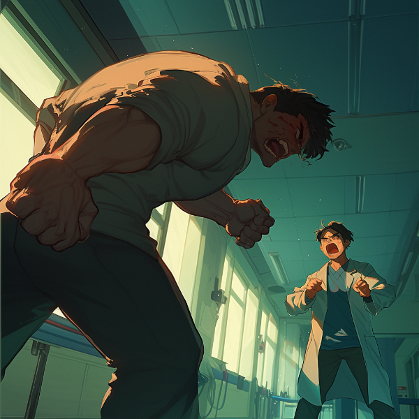 그림 1. 의료 현장의 그림자: 예기치 못한 폭력에 직면한 순간을 표현한 일러스트레이션