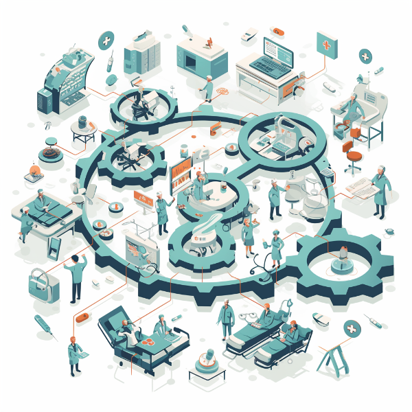 그림 1. 현대 의료의 톱니바퀴: 끊임없이 돌아가는 병원 시스템과 그 중심에 선 의료진들