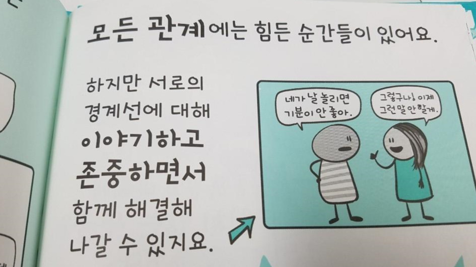 시대가 많이 달라졌다. 요즘의 부모들은 아이들을 케어하기 바쁘다. 세상이 험해졌고, 아이들은 많은 위험에 쉽게 노출된다. 처음 부모가 되어보는 나는 궁금한 게 있으면 책을 찾아보게 된다. 책 <동의>는 엄마인 내가 궁금해서 구입했다. 이제 초등학교 고학년이 되어가는 아이가 자신의 의사를 정확하게 밝힐 수 있는 당당함이 필요한 시기라는 생각이 들었다. 세상의 모든 사람의 생각이 같지 않음을, 우리 모두에게는 자신의 경계선을 스스로 정할 수 있는 권리가 있음을, 개인마다 그 경계선은 다를 수 있음을 재미있고, 친절하게 알려준다.