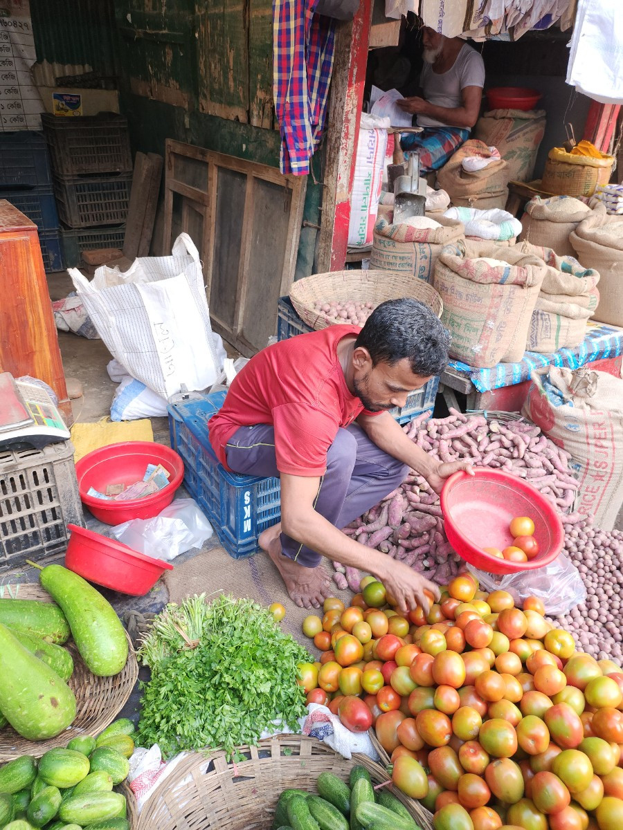 방글라데시 전통 시장에서 식재료는 금방금방 구할 수 있다. 그리고 숨겨진 정들도 찾아볼 수 있다. 정확하면서도 정확하지 않다. 무게를 철저하게 재지만 주로 원하는 양보다 살짝 더 준다. 또 가격을 깎아달라고 하면 깎아준다. 그러면서 재료는 신선하다. 시골 특유의 정을 느낄 수 있다. 수도, 다카와 달리 외국인이라고 비싸게 팔지도 않는다. 이곳에 정이 생기고 있다. 점점 외국인 단골이 되어 가는 중이다.