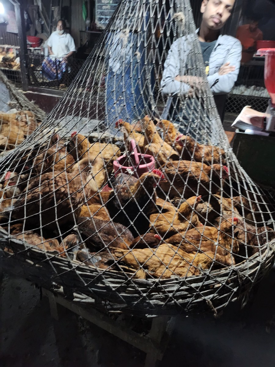 반면 닭은 처음에 봤을 때 충격적이었다. 살아있는 닭들이 좁은 케이지에 다닥다닥 붙어있다. 우리가 산다고 하면 그 자리에서 한 마리를 꺼내 잡아준다. 손질해 주는데 5분도 안 걸린다. 순식간에 피를 뽑고 털과 껍질을 제거해서 봉투에 담아 준다. 나머지는 우리가 직접 우리 손으로 손질해야 한다. 머리는 달려있고 배 안에 아직 내장도 남아있다. 처음 봉지에서 닭을 꺼냈을 때 닭의 눈을 보고 깜짝 놀랐다. 머리는 없을 줄 알았다. 그다음으로 배를 갈랐을 때 또 한 번 놀랐다. 빨간 심장과 내장들이 있었다. 내장들을 온전히 품고 있을지 몰랐다. 닭 손질 과정이 익숙해질 때까지는 시간이 꽤 걸릴 것 같다. 그래도 가격은 많이 싼 편이다. 작은 닭 한 마리에 1500원 정도밖에 하지 않는다. 한국의 닭가슴살과 비교했을 때 매우 싼 편이다.