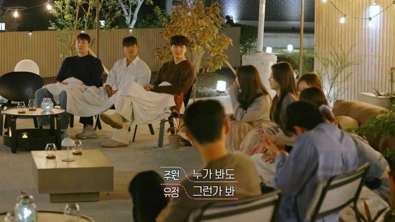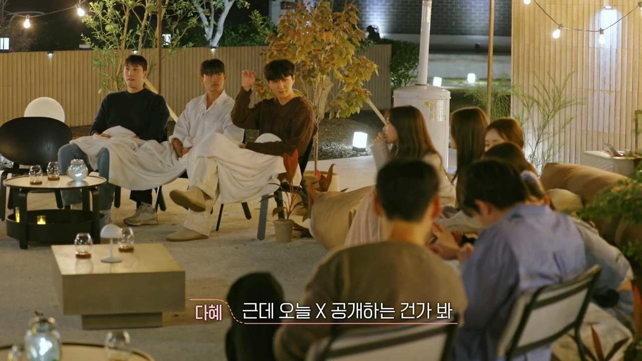 이제 막 제주도에 도착한 출연자들의 눈앞에는 모두가 둘러 앉을 수 있는 기다란 소파와 빔을 쏠 수 있는 스크린이 있다. 자연스럽게 소파에 하나둘씩 자리를 잡기 시작한 출연자들이 한마디씩을 거든다. “X 커플 공개하려나 봐.”, “올 게 왔구나.” 그 뻔한 세팅과 대사 모두가 너무나 대놓고 X 공개를 가리키고 있었기 때문에, 처음에는 오히려 그게 반전의 밑밥인가 싶었다. 진짜 여기서 공개할 거라면 이렇게 대놓고 X 공개를 예측하는 출연자들의 모습을 보여줄 리가 없어. 에이 이건 너무 뻔하지, 하고.