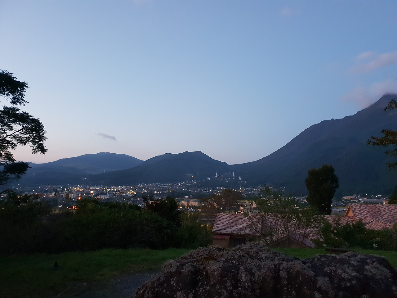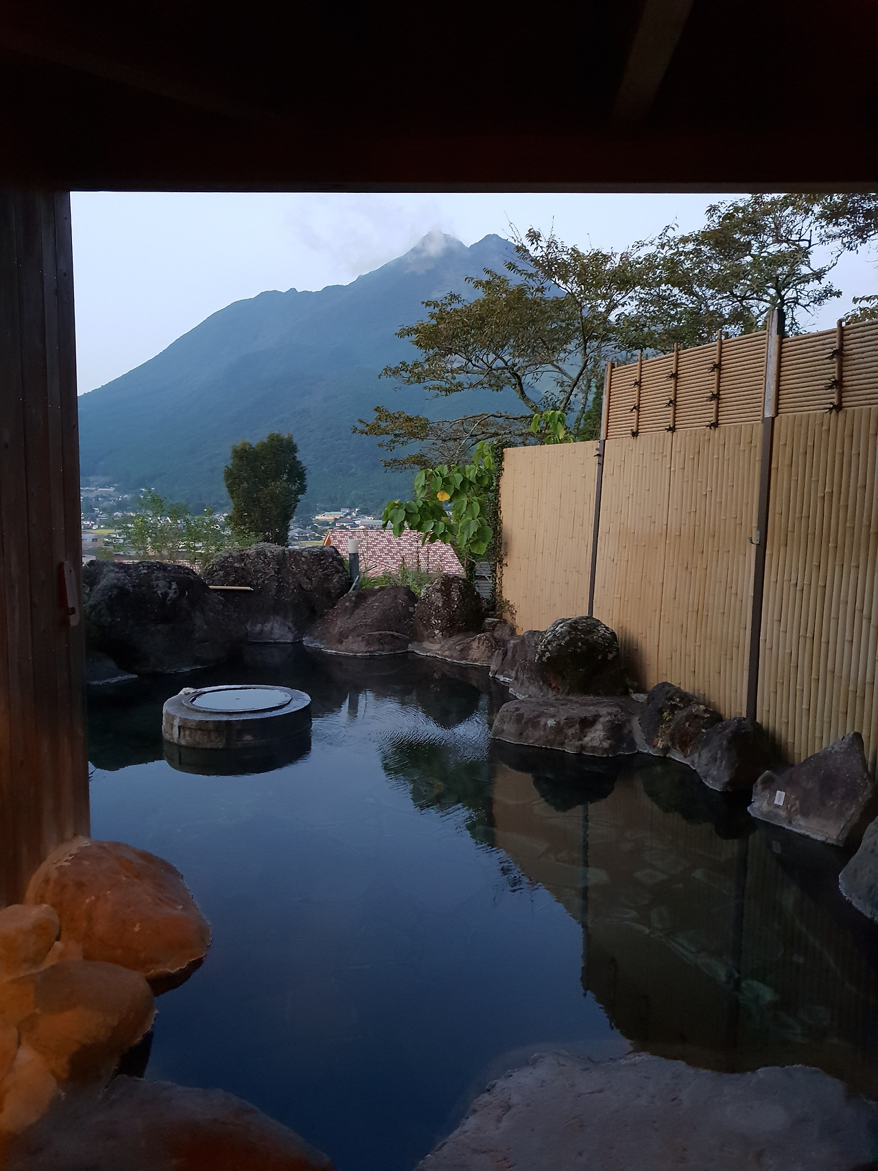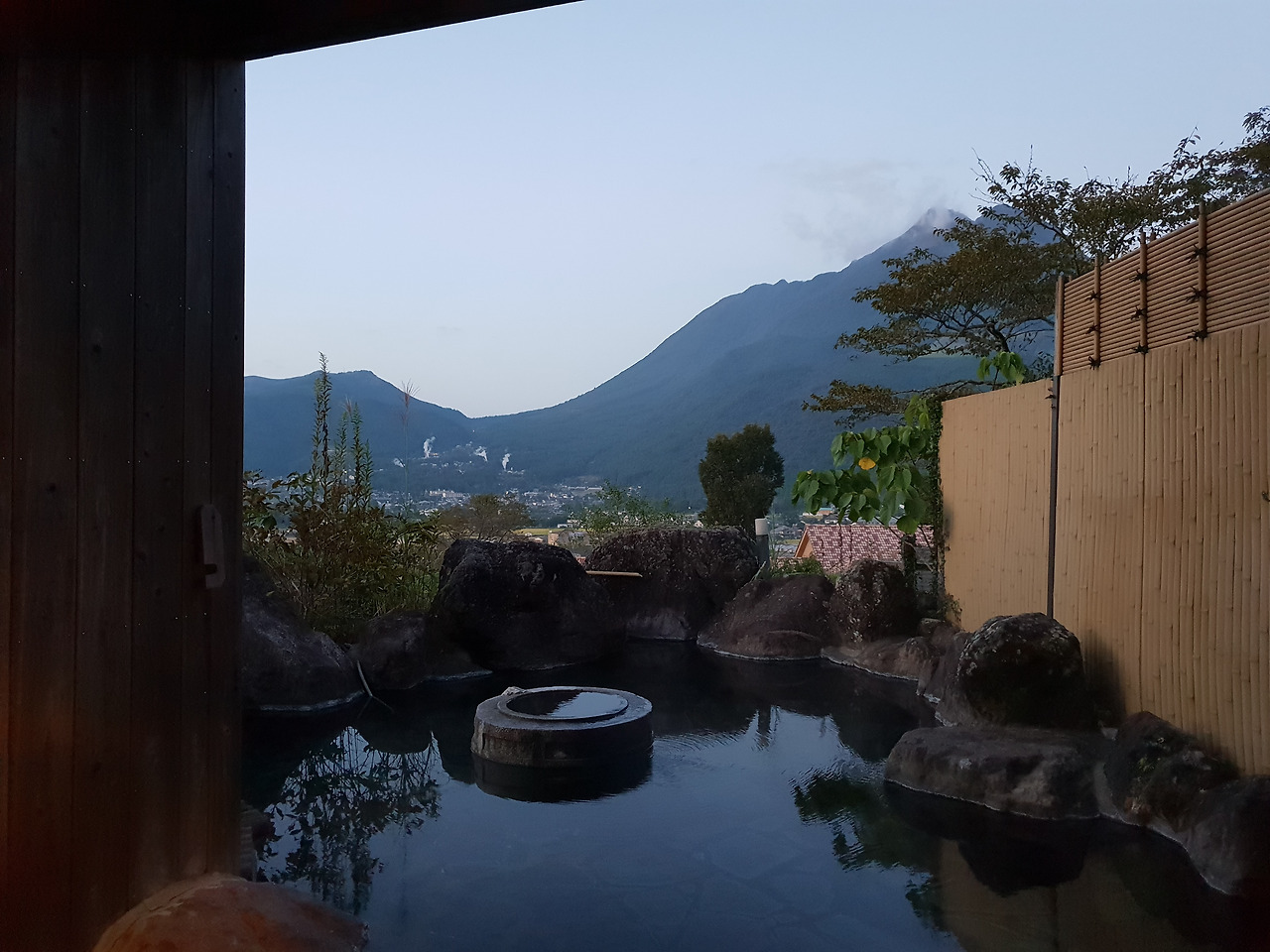 그렇다고 료칸 전체를 독점하는 이런 날 이대로 멈출 수는 없다. 다시 유카타를 입고 몇 시간 전 안내받았던 노천탕으로 향했다. 높은 언덕에 위치한 료칸의 진가는 이 노천탕에서 드러났다. 문을 열자 바위들로 둘러싸인 탕에선 김이 모락모락 올라왔고 그 너머로는 유후인 한편이 내려다 보였다. 저녁시간 직전 해가 져가는 작은 마을을 바라보는 기분이 참 좋았다. 밥 짓는 김은 아니지만 눈에 들어오는 많은 집들의 온천 굴뚝에서 김이 모락모락 피어오르고 있었다. 아마 그곳들이 모두 크고 작은 료칸들이고 온천의 초보부터 고수까지 몸을 담그고 있겠지. 가을의 문턱에 들어선 유후인 저녁의 공기는 제법 쌀쌀해서 노천탕을 즐기기 더 좋았다. 그러니까 나 같은 초보도 조금 더 오래 즐길 수 있고 안팎의 온도차가 주는 재미도 있는데 경치까지 좋으니 그 탕 하나만으로도 이미 여행이 완성된 기분이었다. 아니 완성이라고 생각해버렸다.